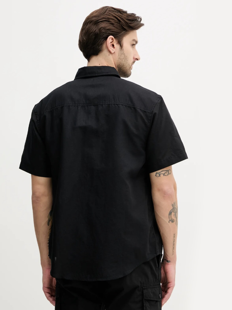 Pánská černá lněná košile s krátkým rukávem Calvin Klein.