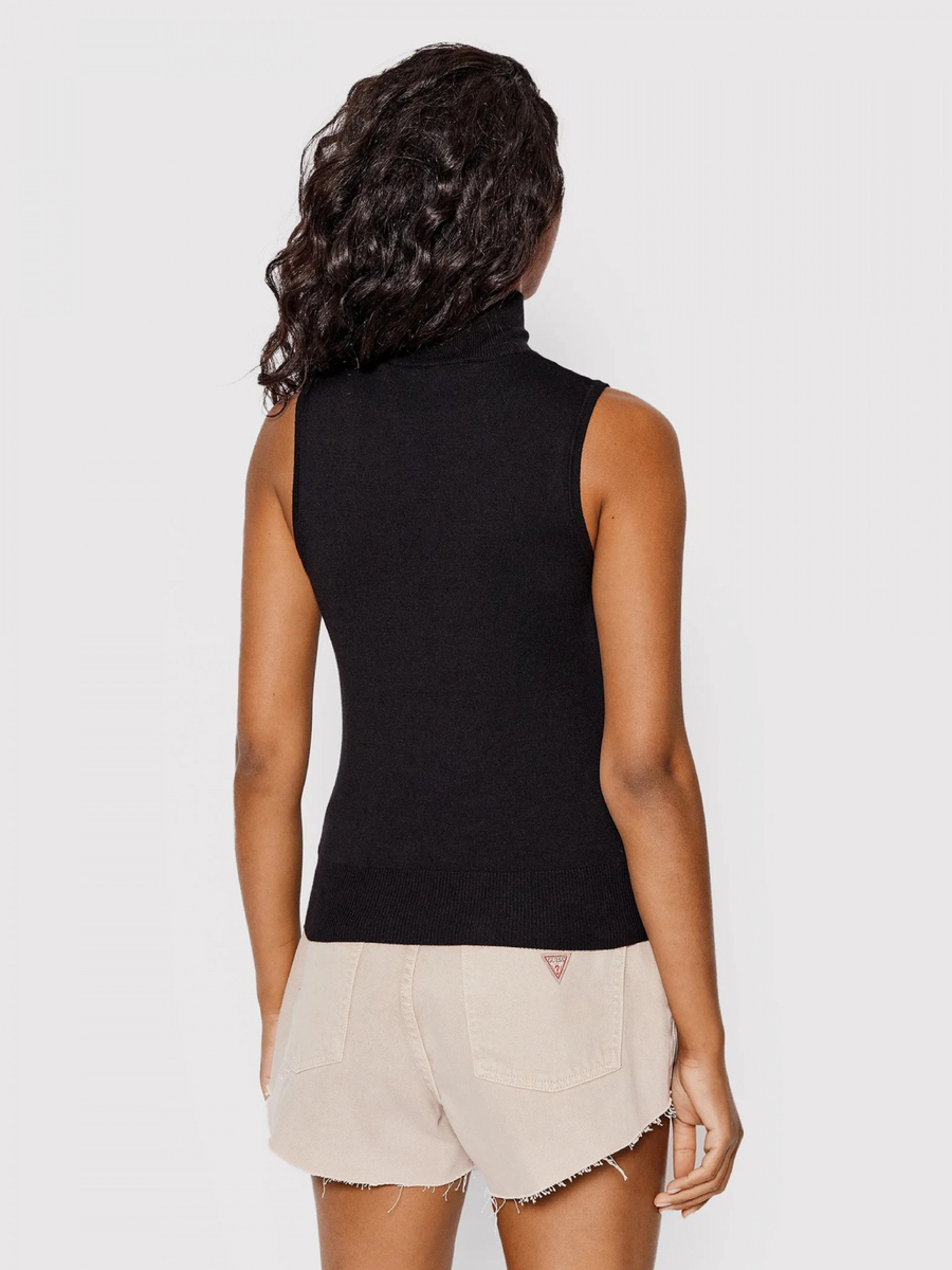 Dámský černý svetřík bez rukávů od Guess.