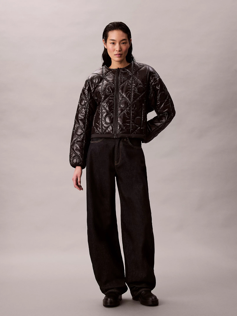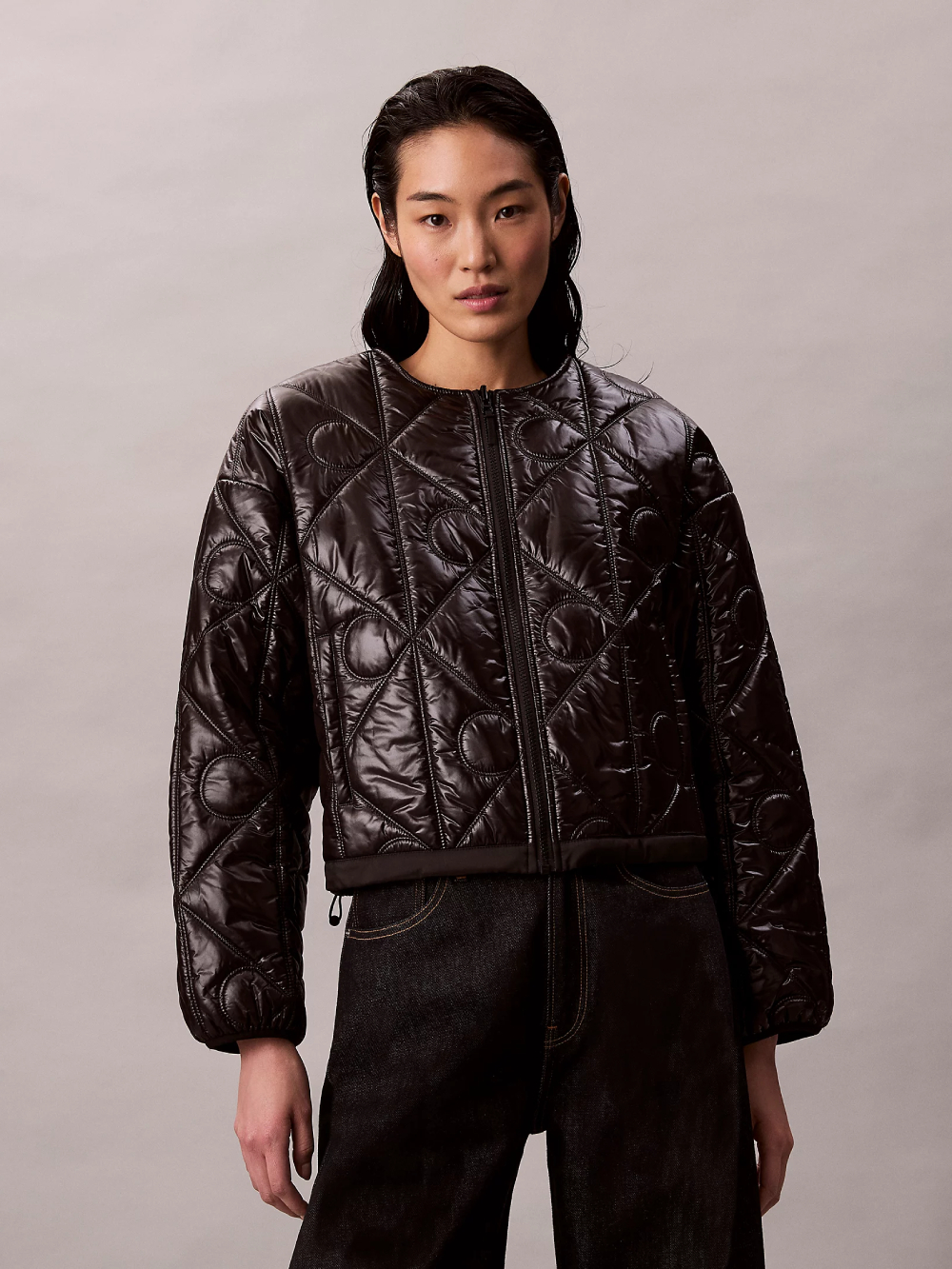 Dámská černá přechodová bunda od Calvin Klein.