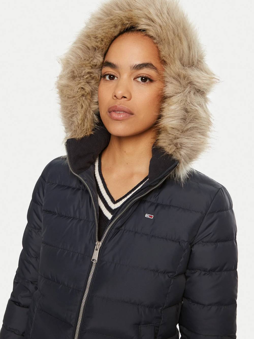 Má odepínací kapuci s odepínací umělou kožešinou.