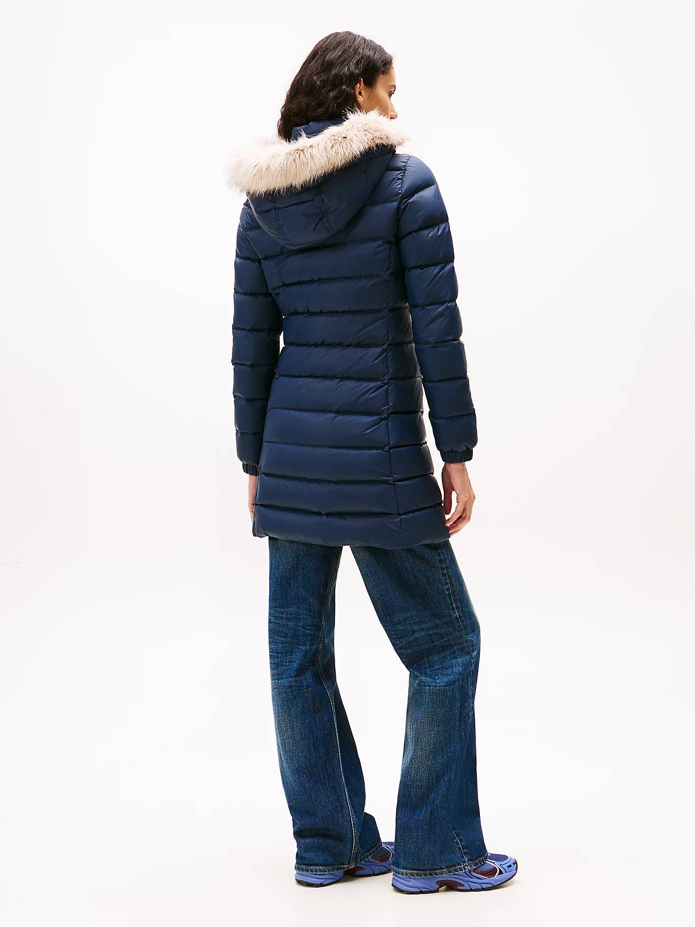Bunda má kapuci, kterou lze odepnout. Umělou kožešinu lze také odepnout.