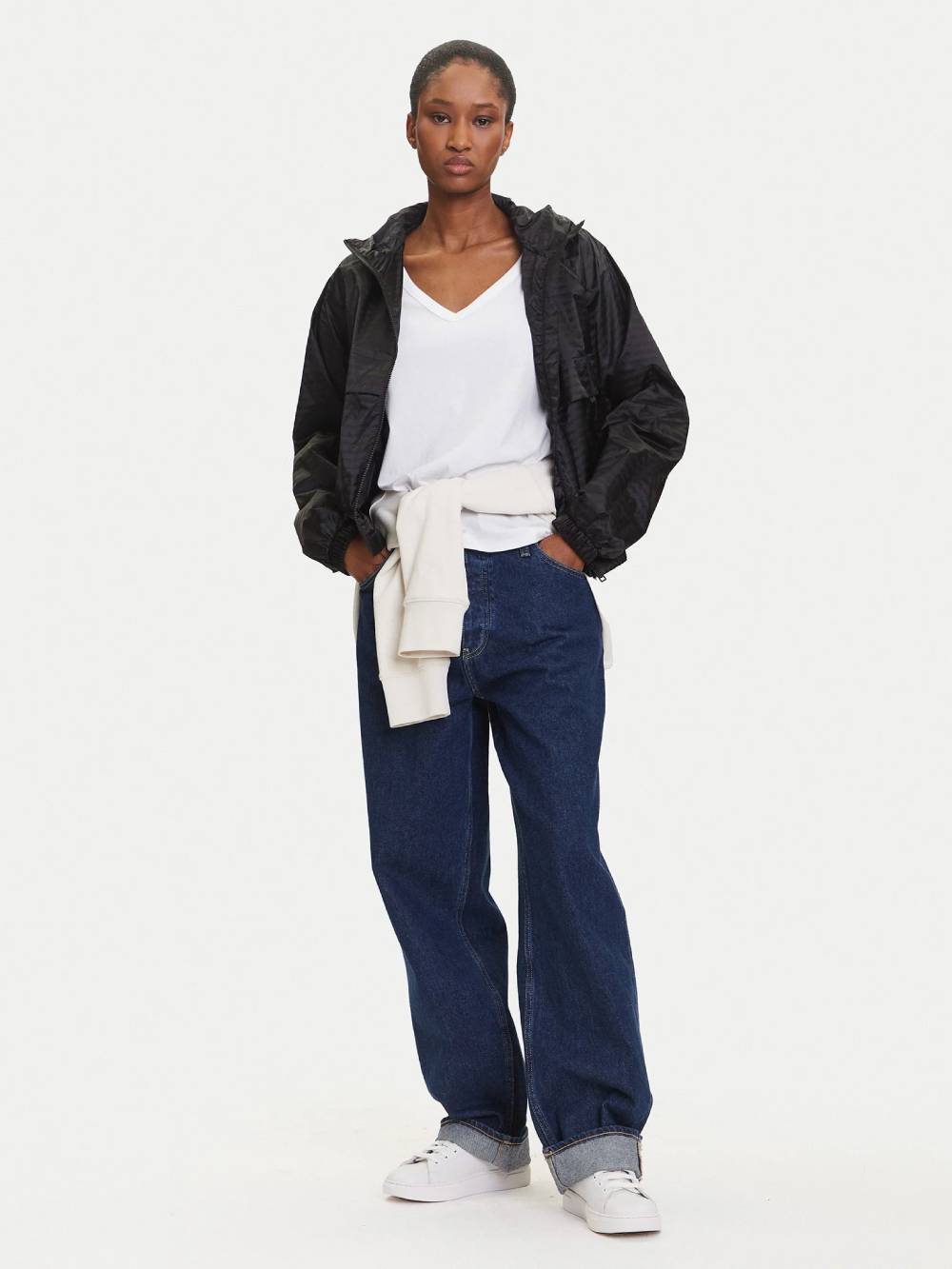 Bunda má dvě boční kapsy a je popsaná monogramem ve stejné barvě.