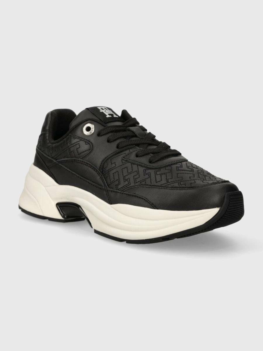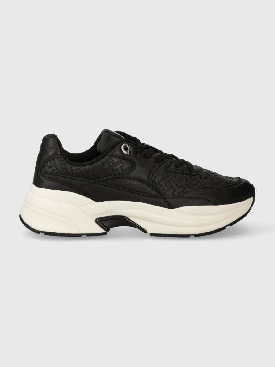 Dámské černé kožené tenisky od Tommy Hilfiger.