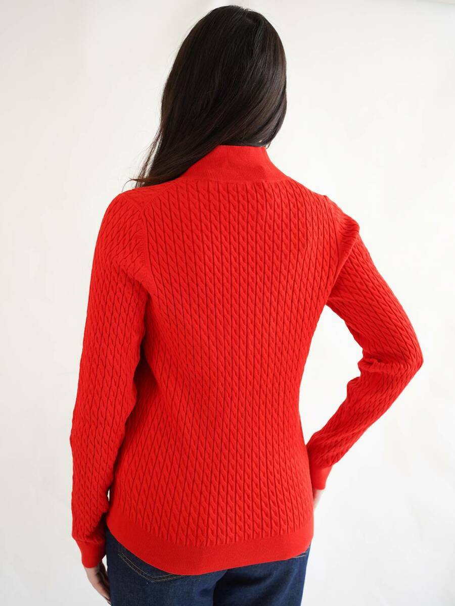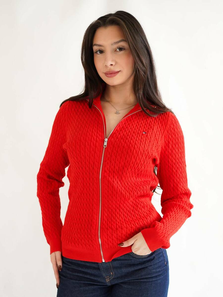 Dámský červený svetr na zip od Tommy Hilfiger.