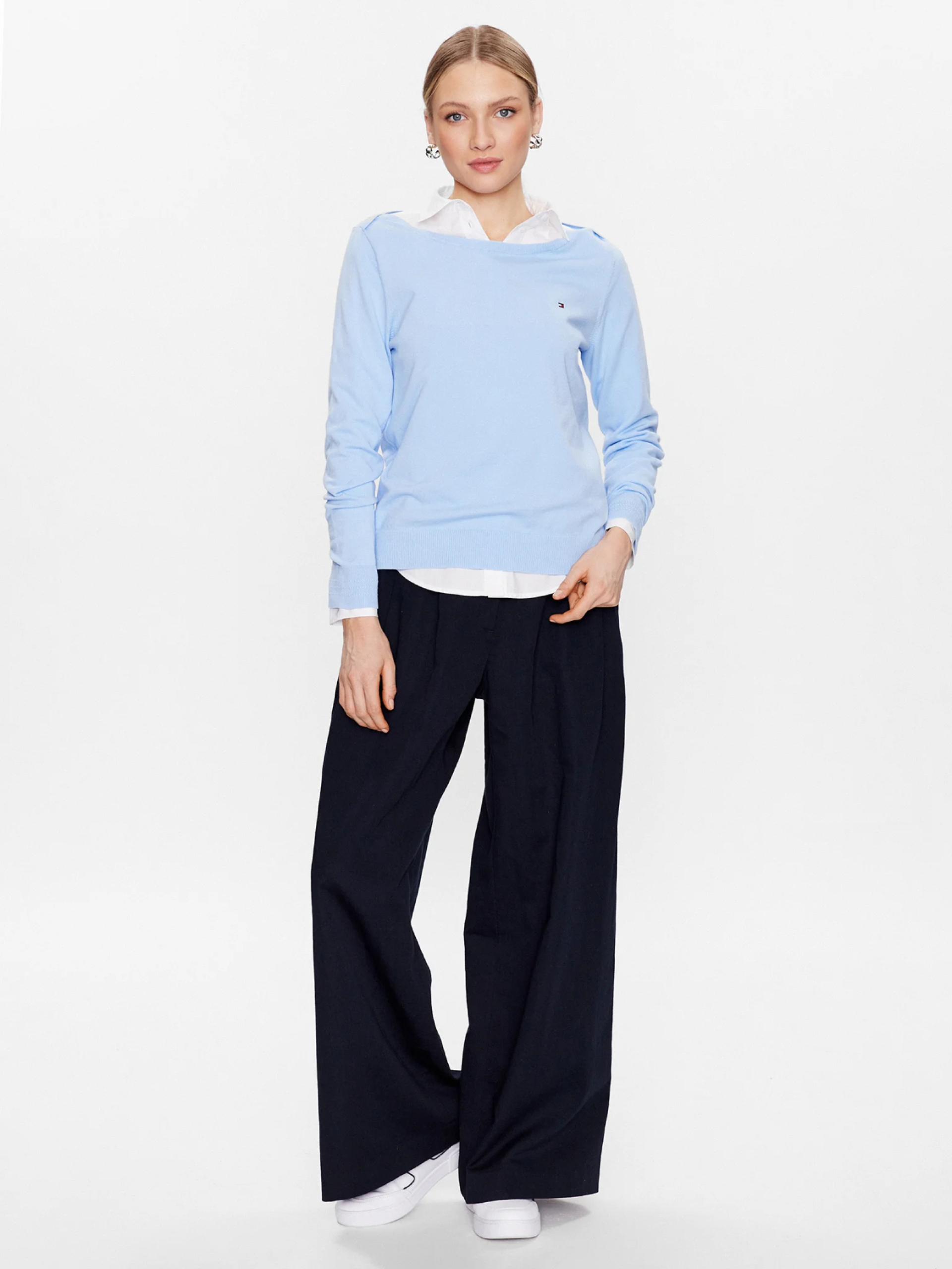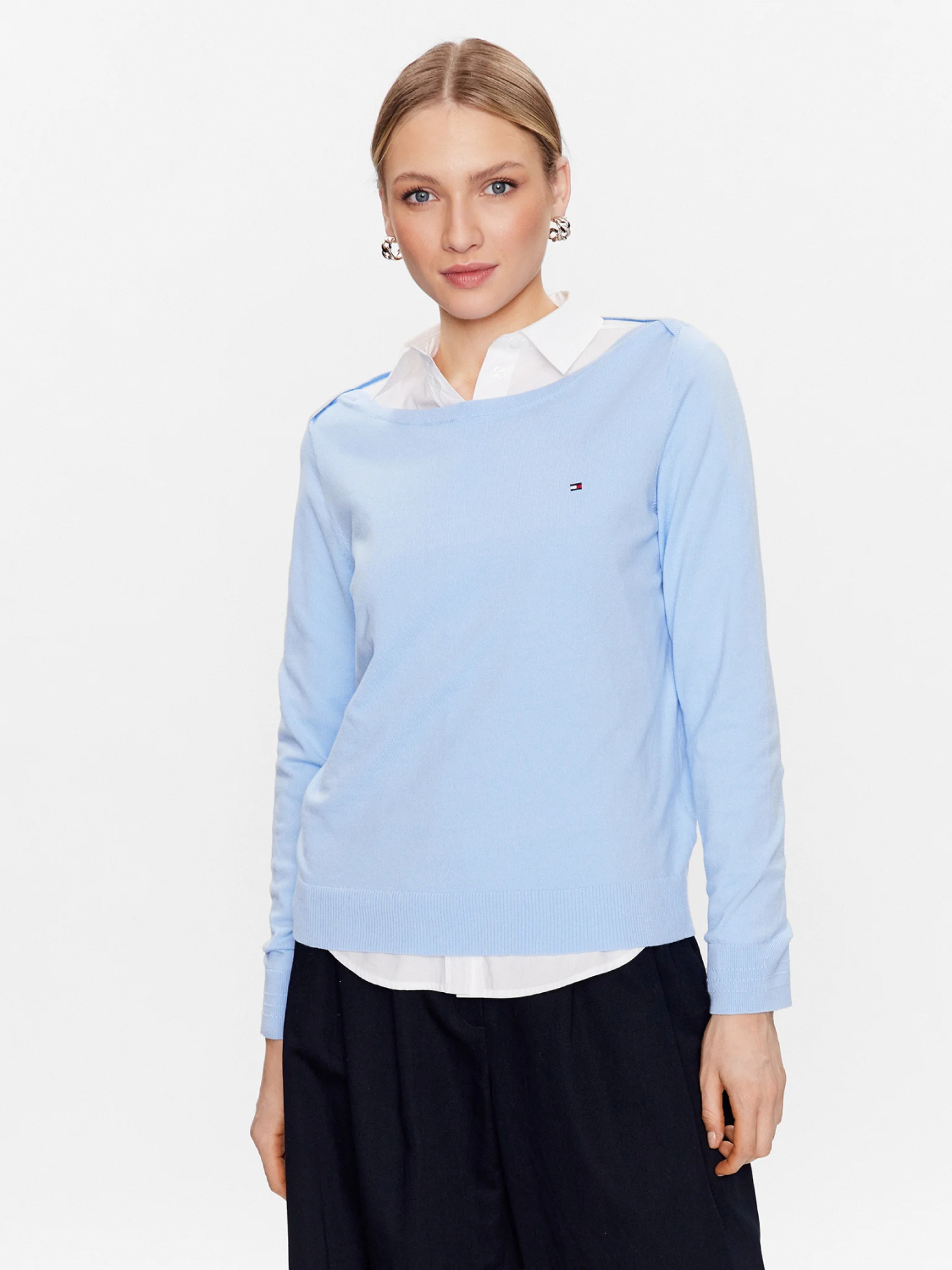 Dámský světle modrý svetr od Tommy Hilfiger.