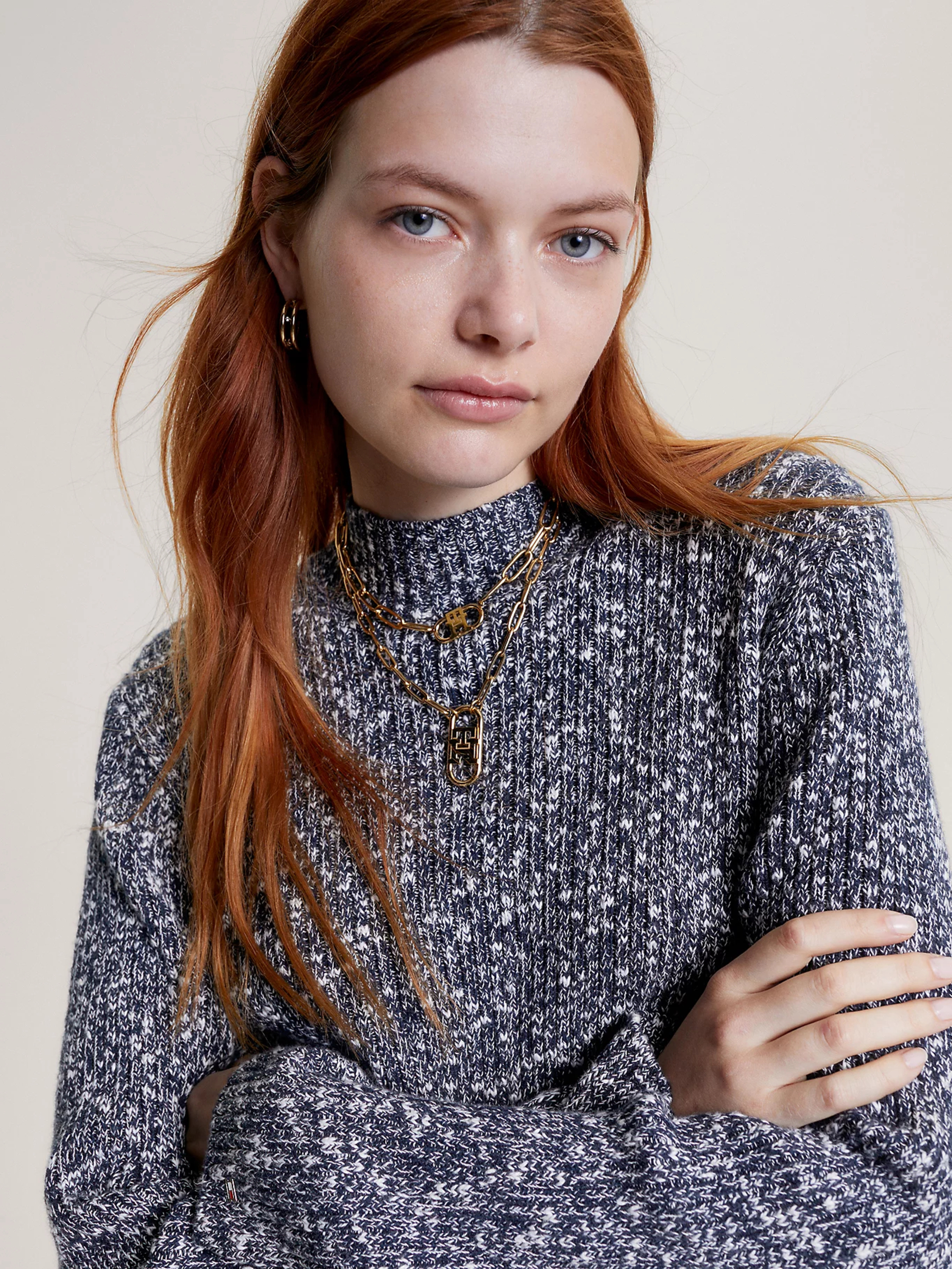 Dámský žíhaný tmavě modrý svetr od Tommy Hilfiger.