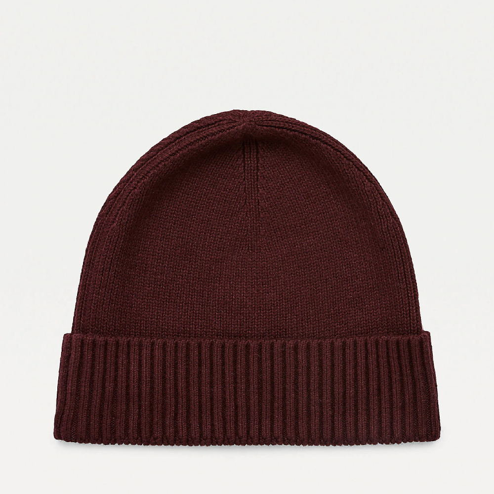 Pánská vínová zimní čepice od Tommy Hilfiger.