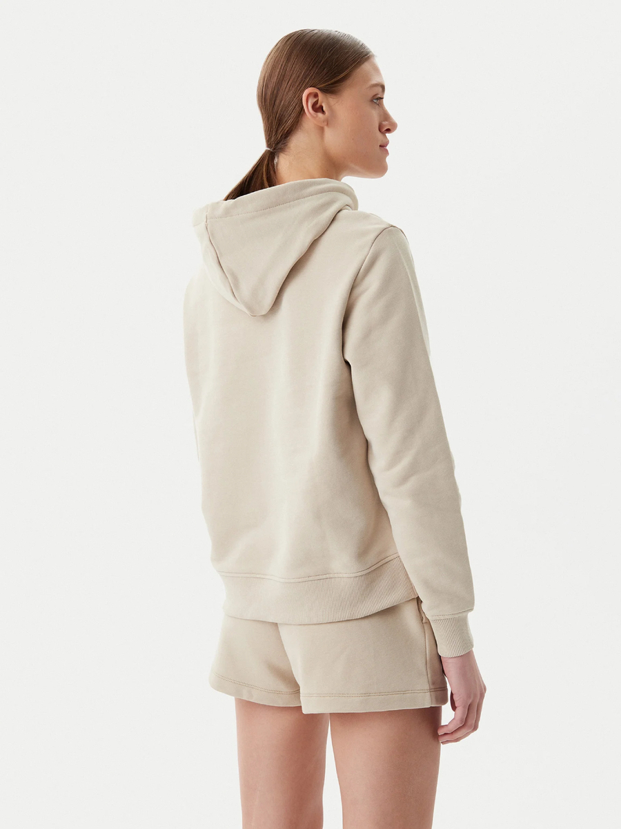 Rukávy a spodní okraj mikiny jsou zakončeny úpletem.