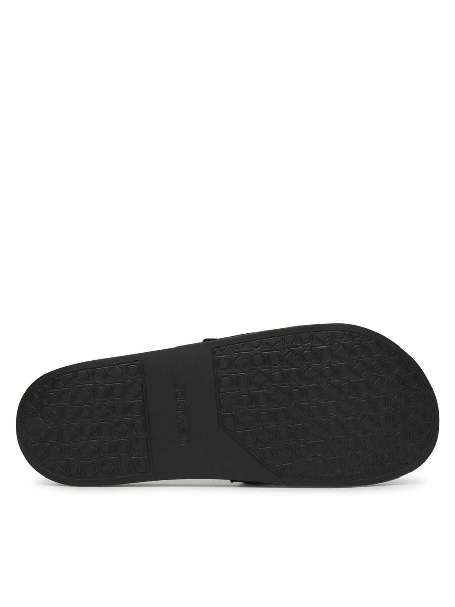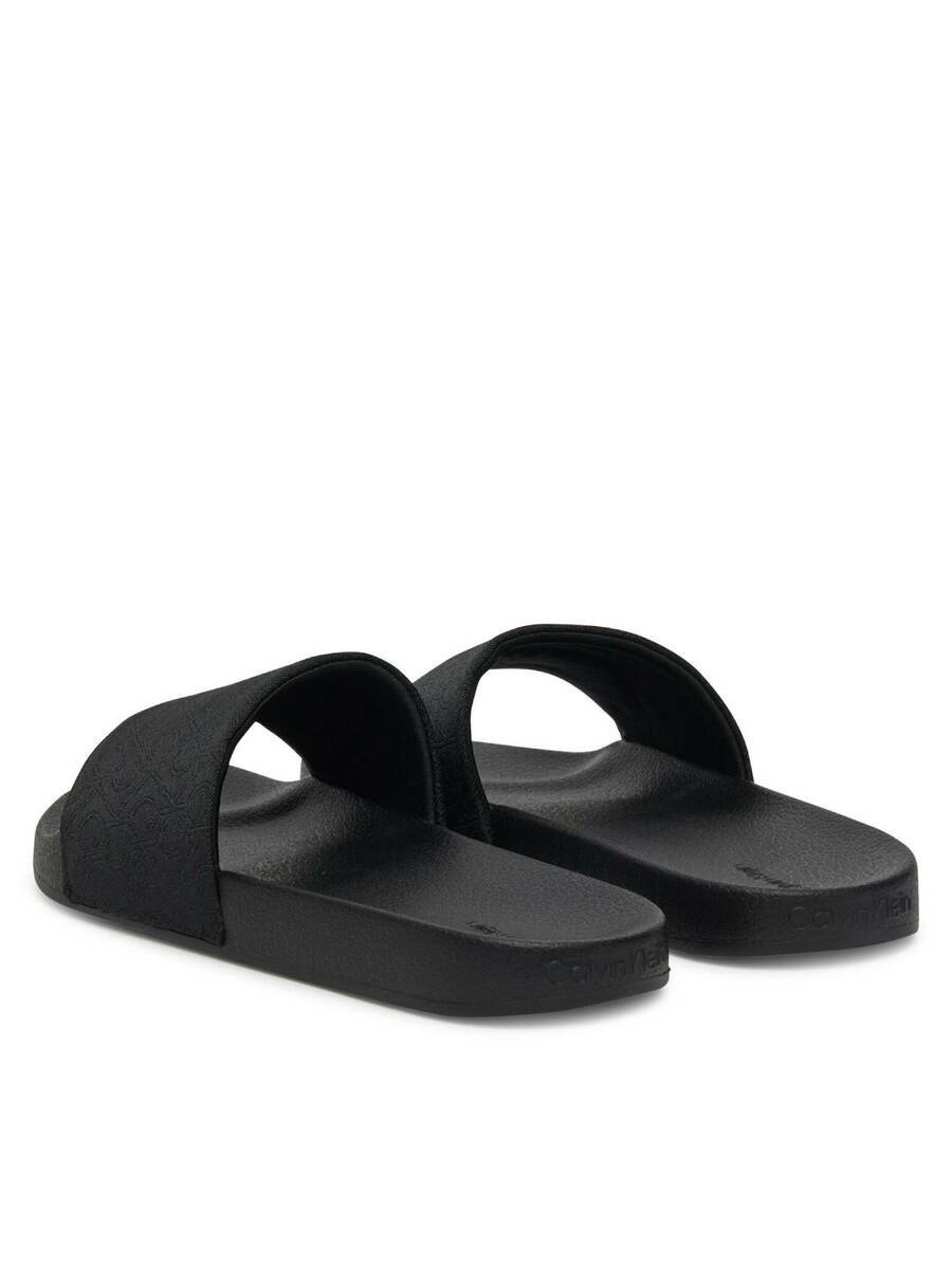 Dámské černé pantofle s monogramy od Calvin Klein.