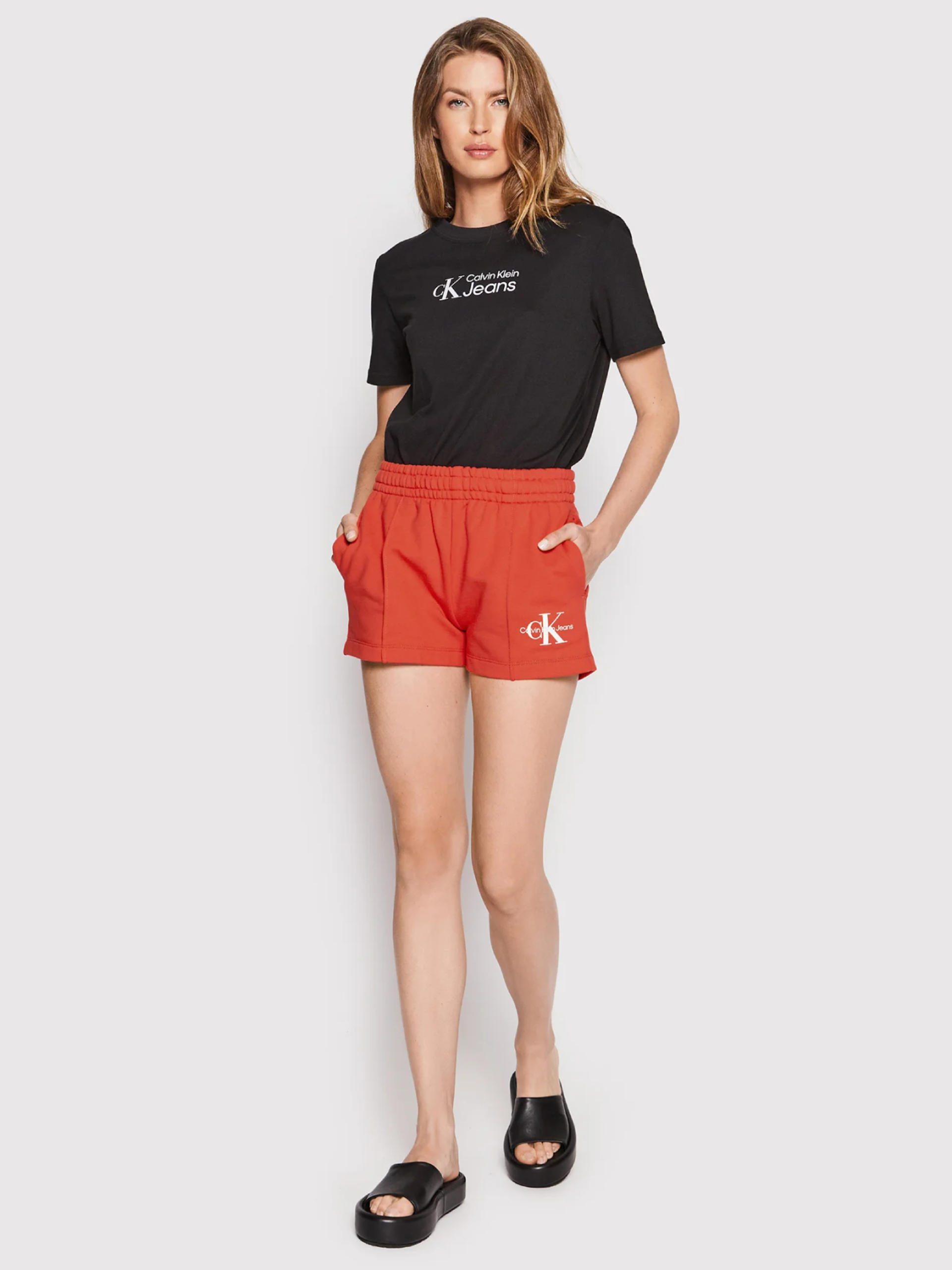 Dámské červené teplákové šortky od Calvin Klein.