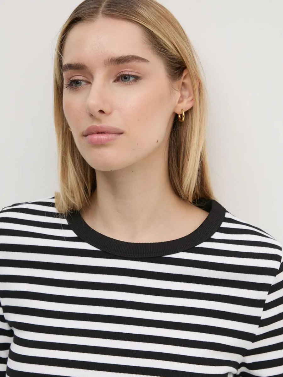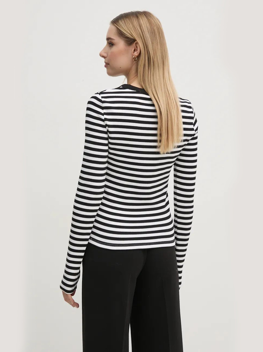 Dámské pruhované černobílé tričko s dlouhým rukávem od Calvin Klein.