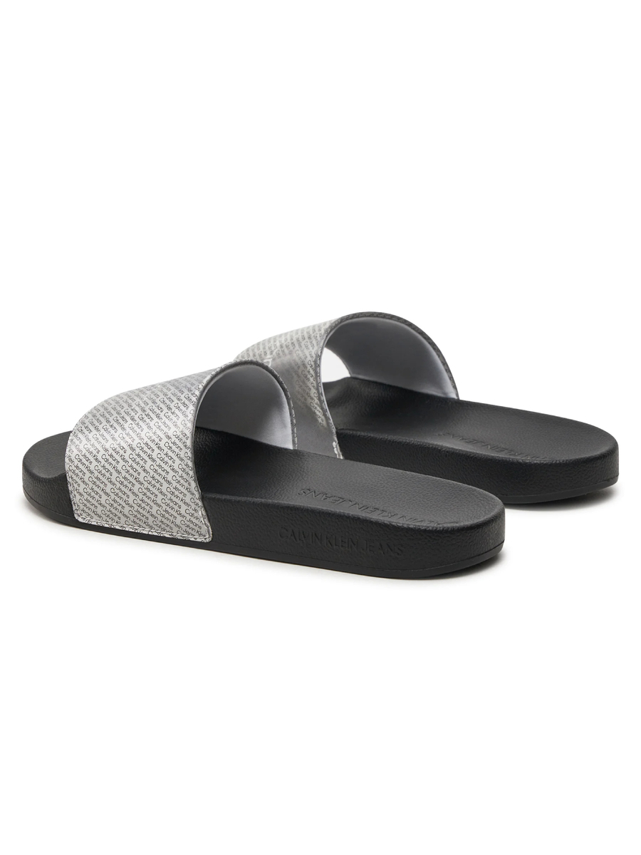 Dámské šedočerné pantofle Calvin Klein.