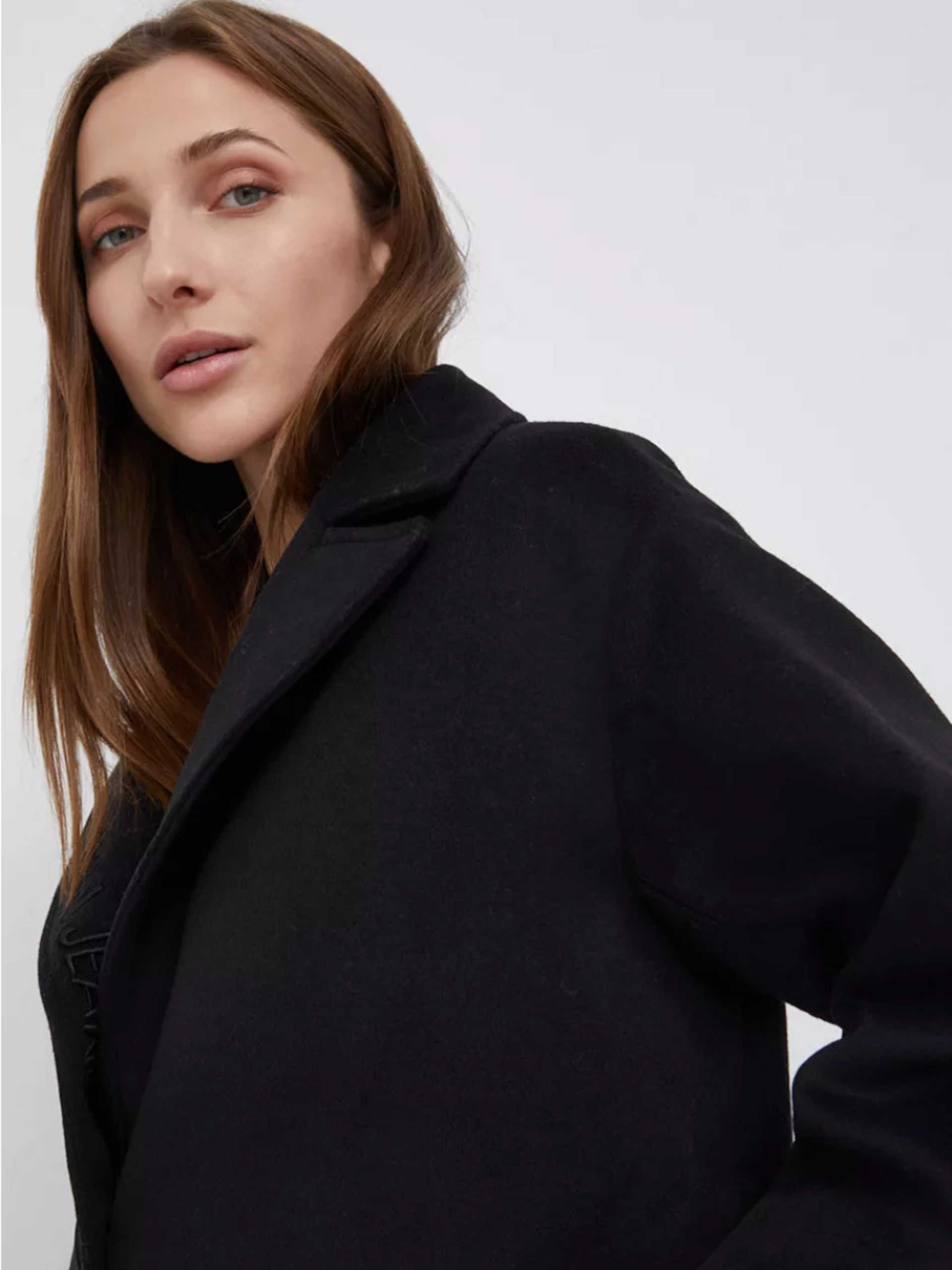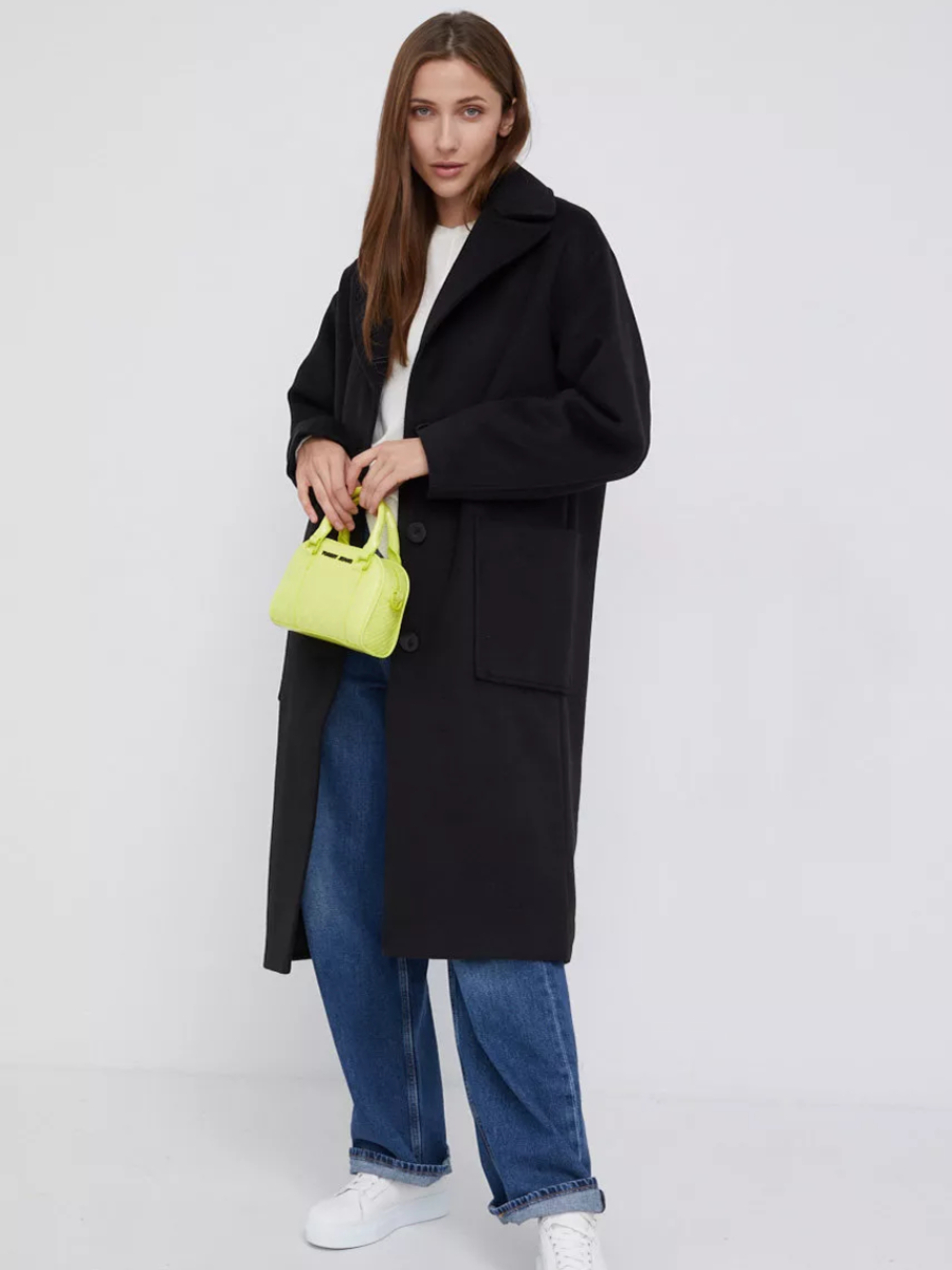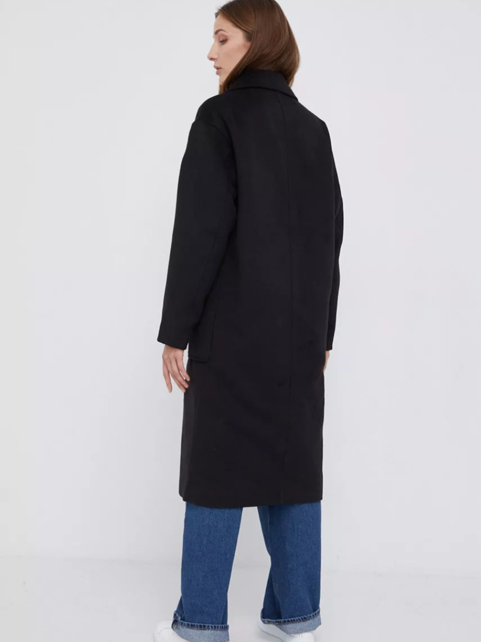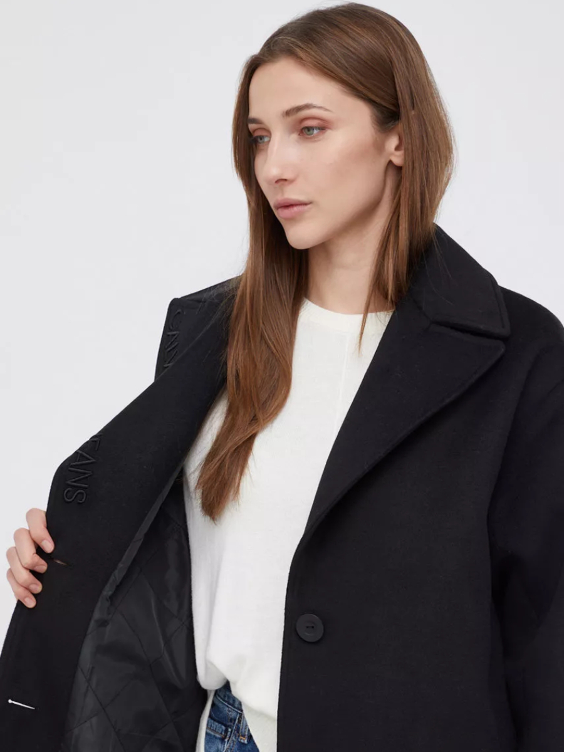 Dámský černý kabát od Calvin Klein.
