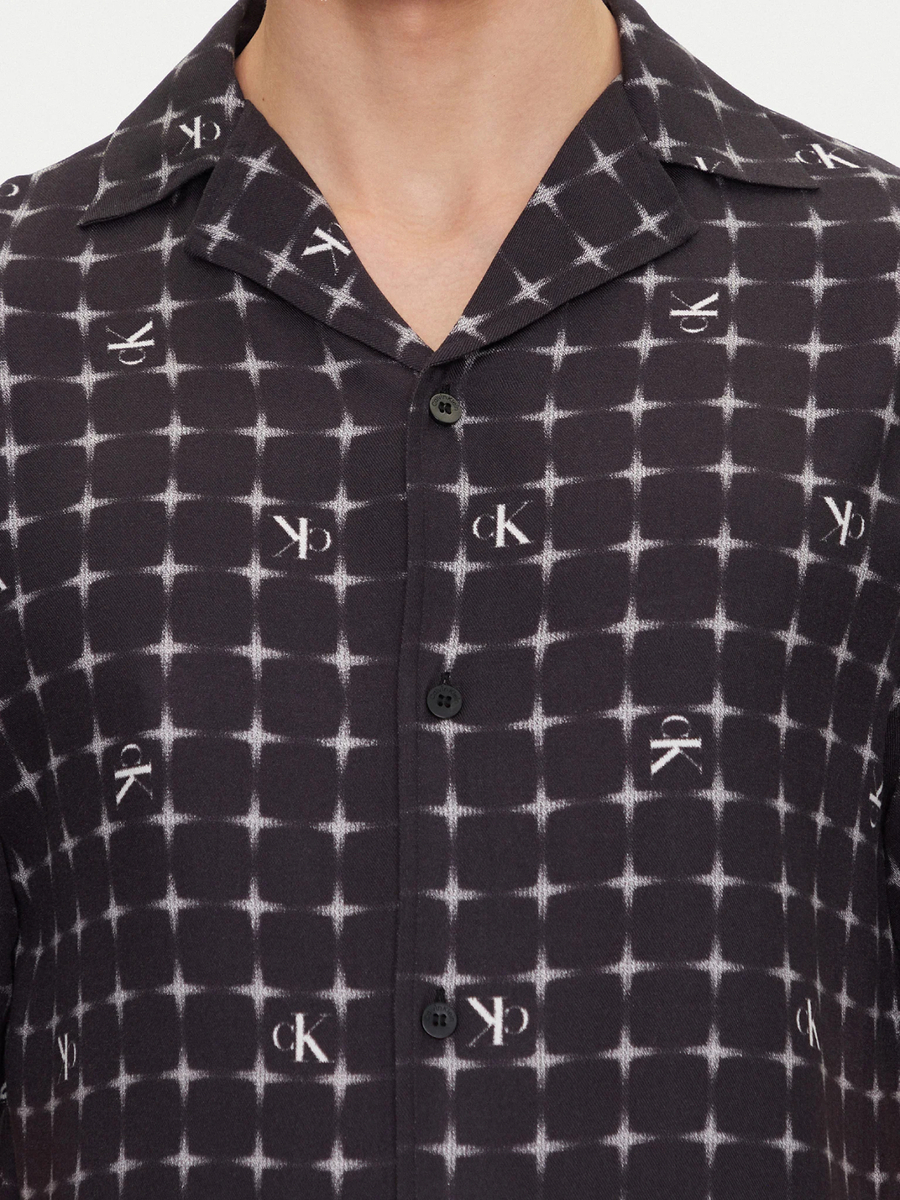 Pánská černá vzorovaná košile s krátkým rukávem Calvin Klein.