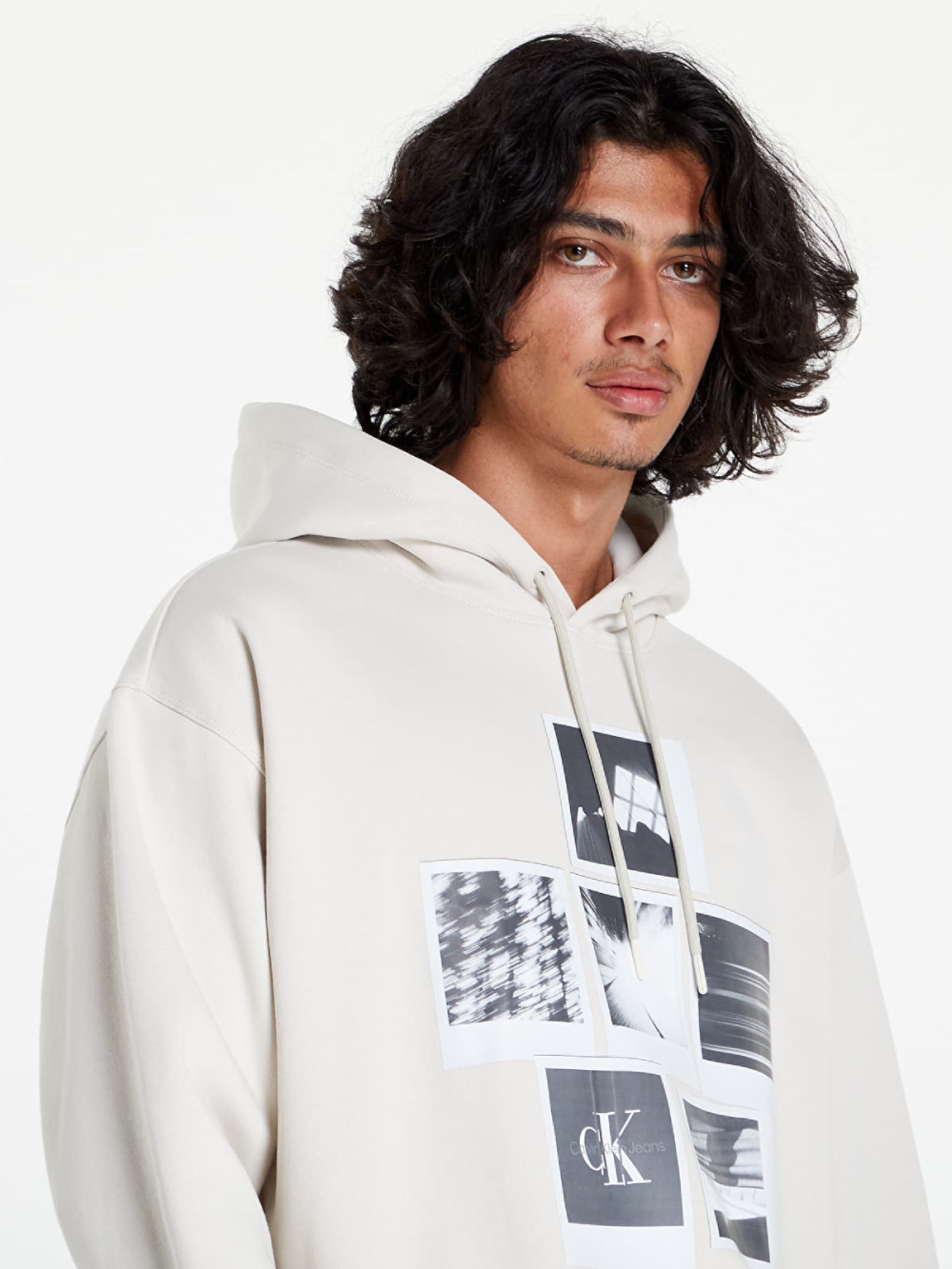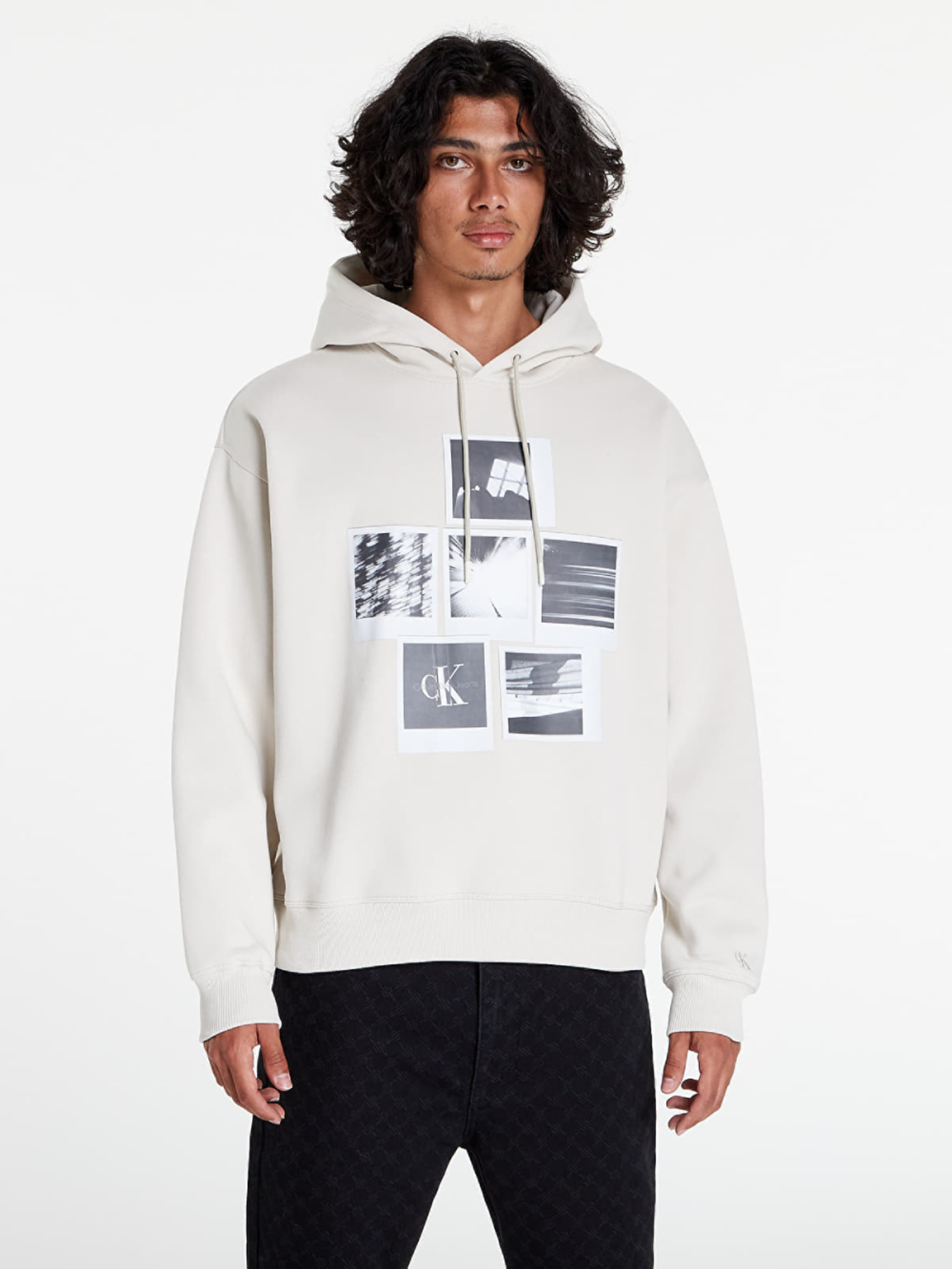 Pánská krémová mikina s potiskem od Calvin Klein.