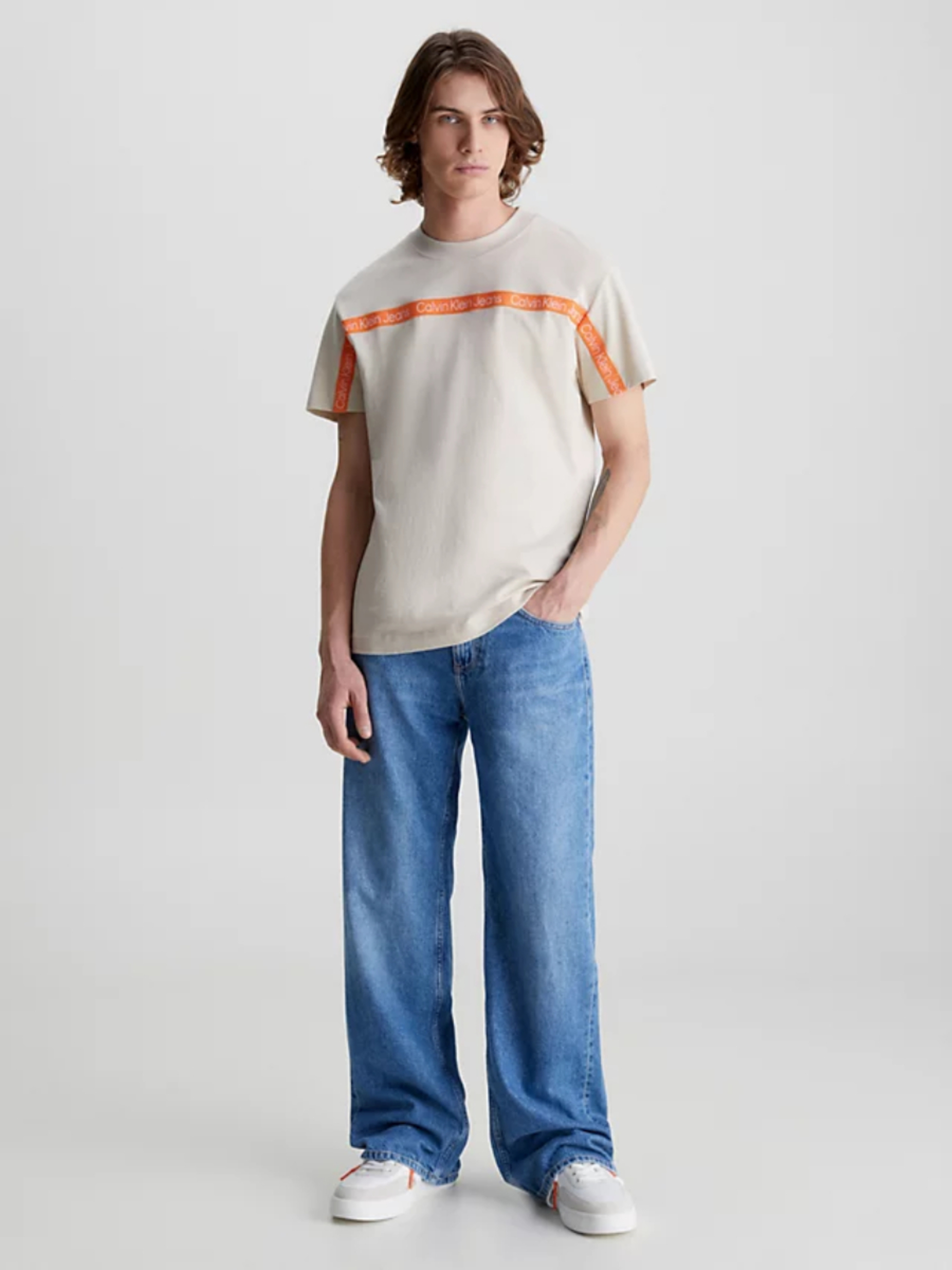 Pánské béžové tričko Calvin Klein LOGO TAPE.