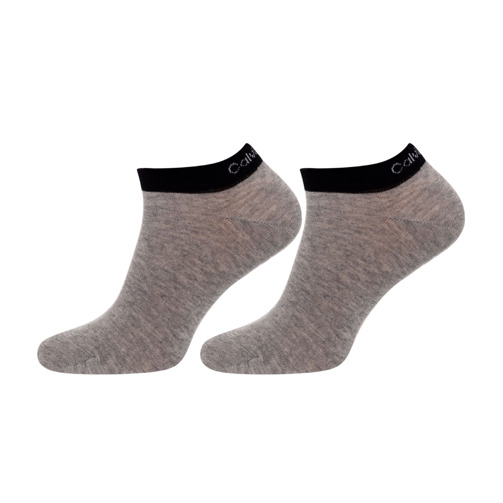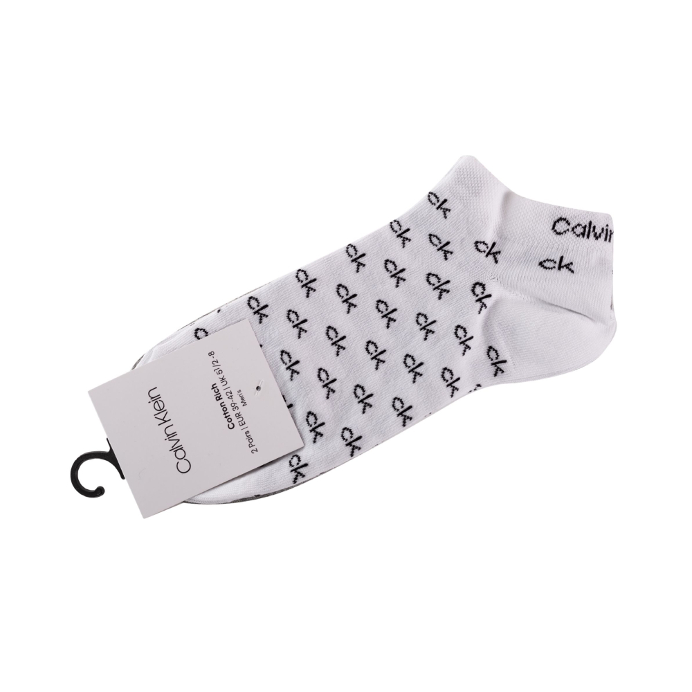 Jedny ponožky jsou bílé s monogramem a druhé šedé.