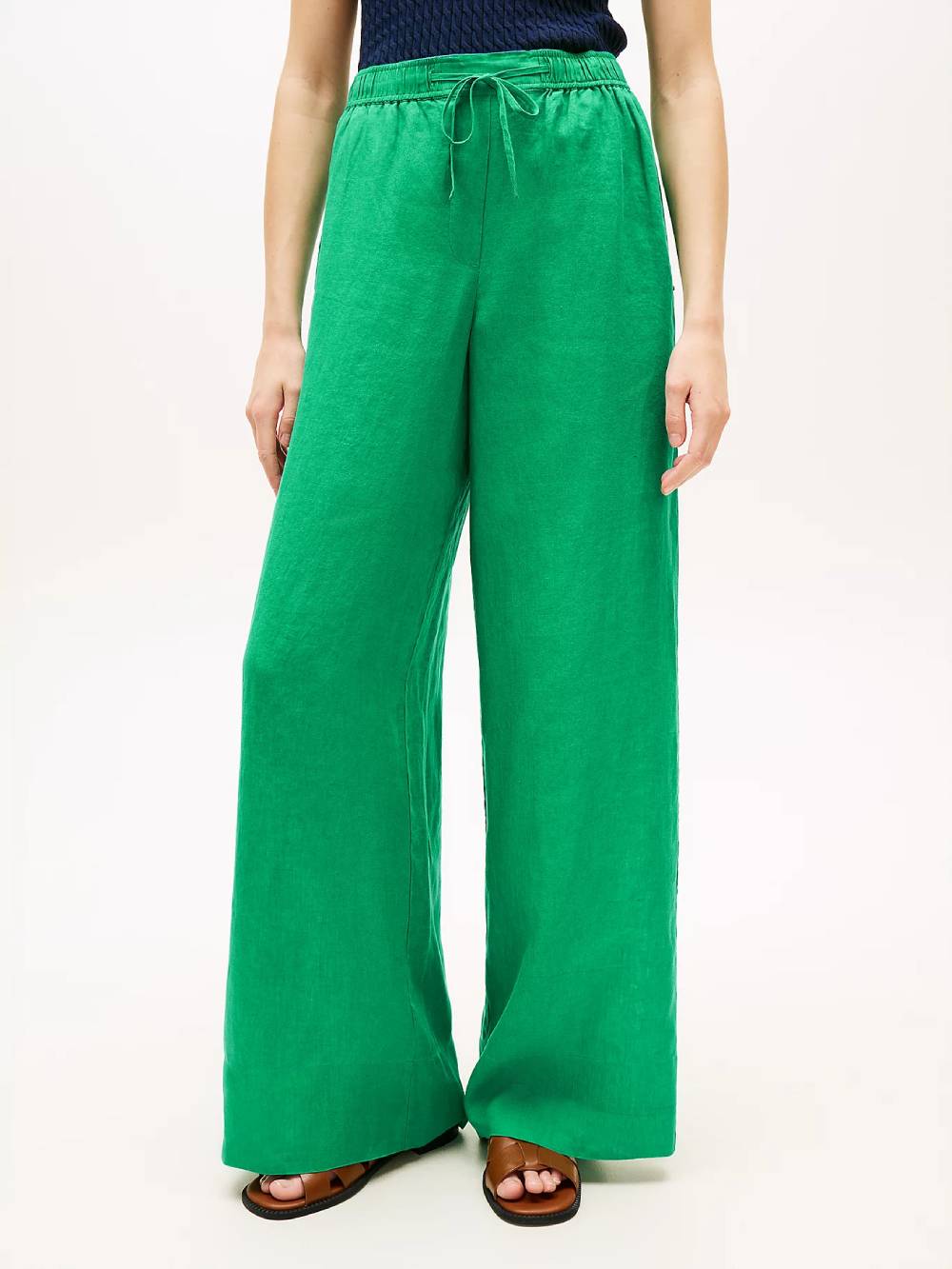 Dámské zelené lněné kalhoty od Tommy Hilfiger.