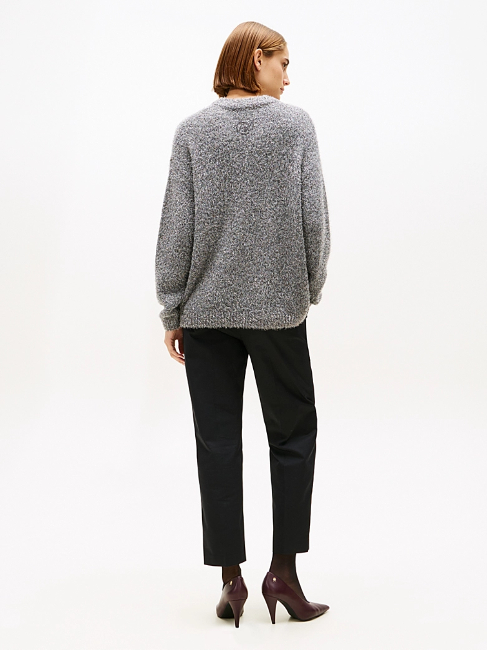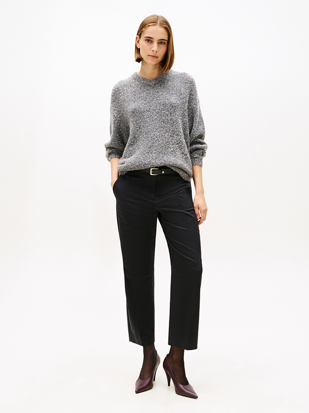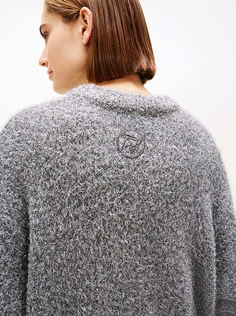 Materiál: 34% polyester, 19% nylon, 16% viskoza, 16% vlna, 12% metalické nite, 3% kašmír.