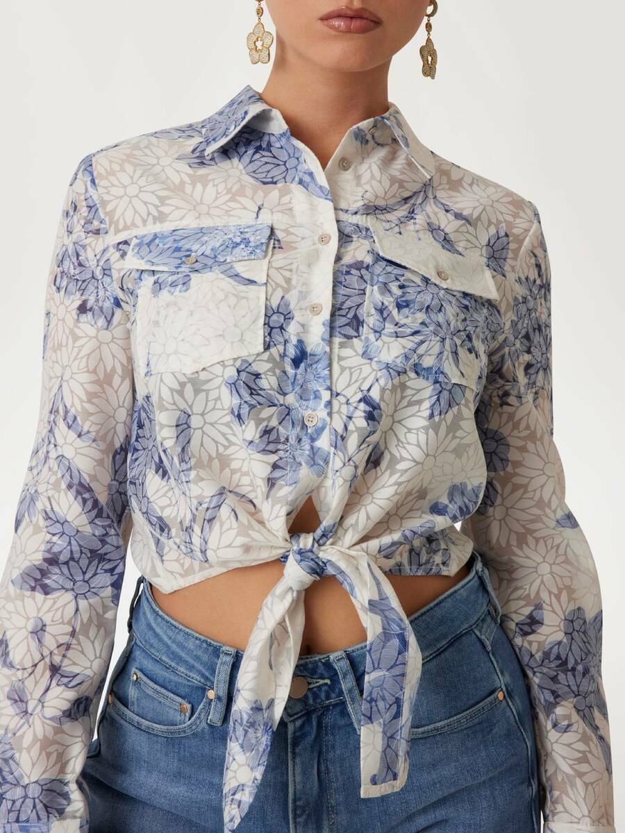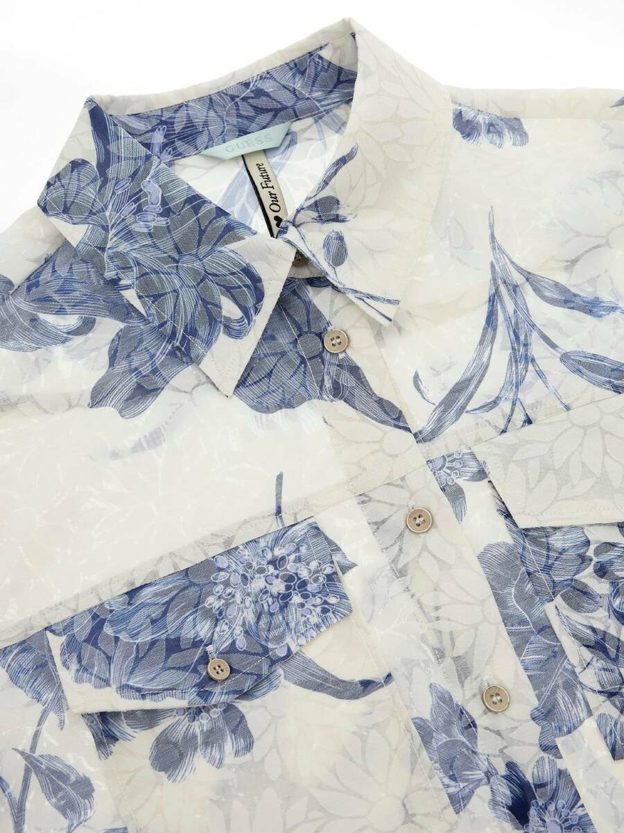 - košile je zdobená modrými kytkami.