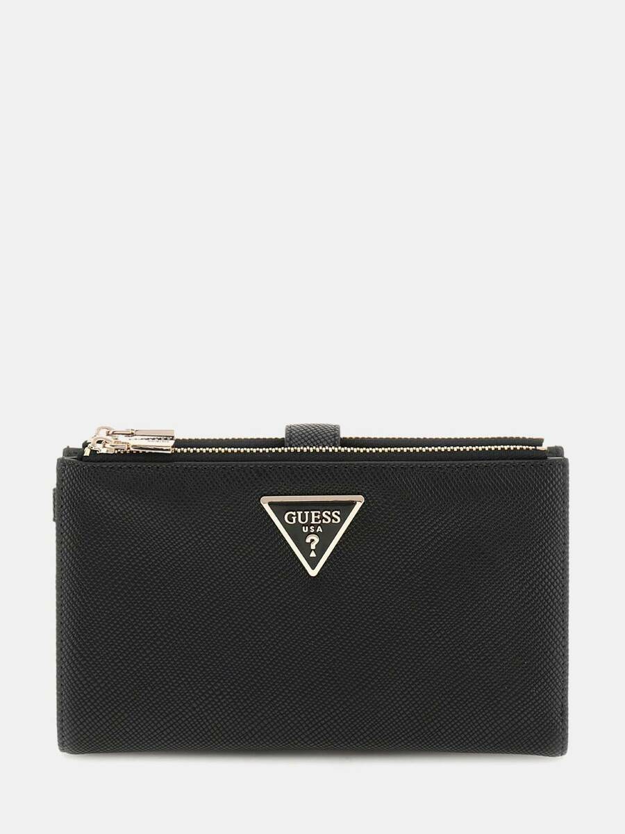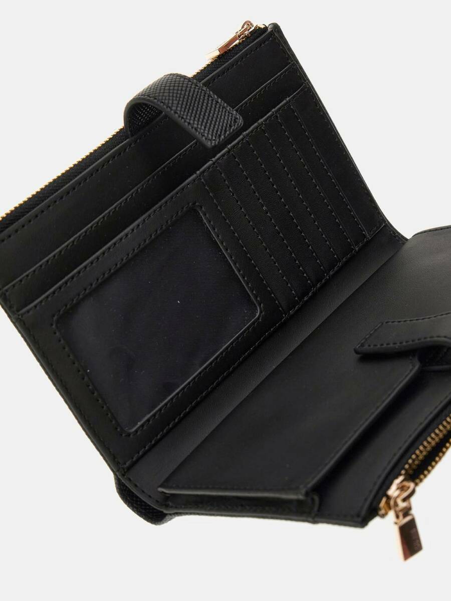 Peněženka má dvě kapsy na zip, 7 přihrádek na karty, dvě boční velké přihrádky, jednu přihrádku na druk, prostor na bankovky mince i karty.