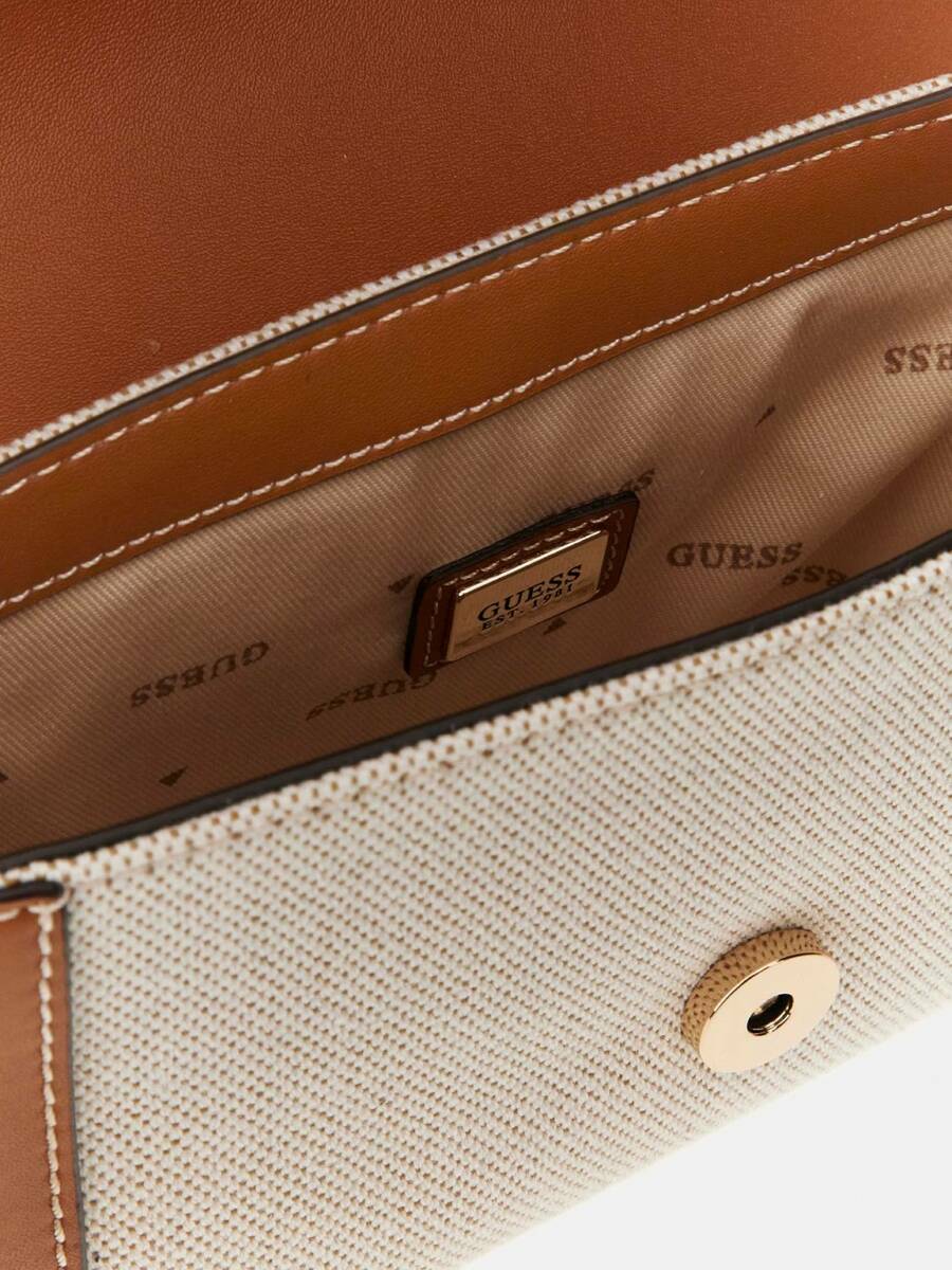 Kabelka má jednu hlavní komoru a tři přihrádky.