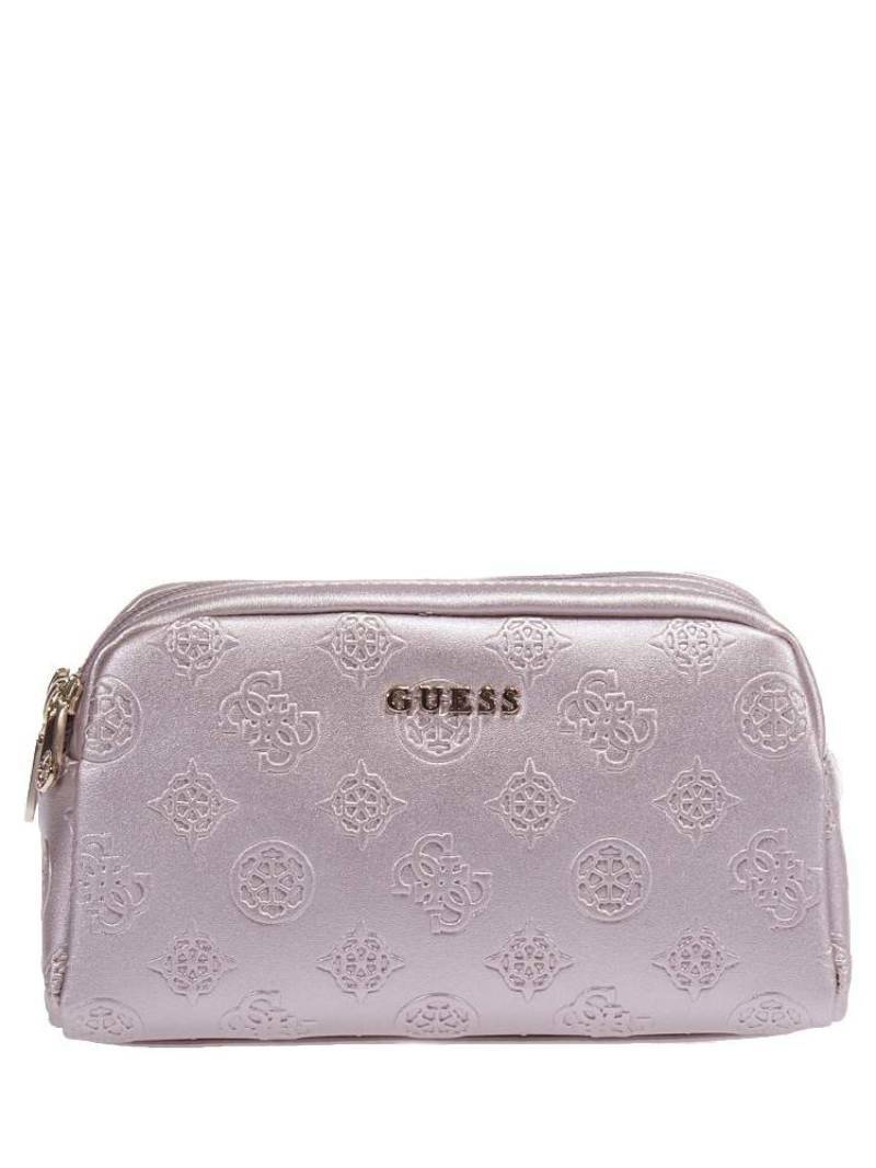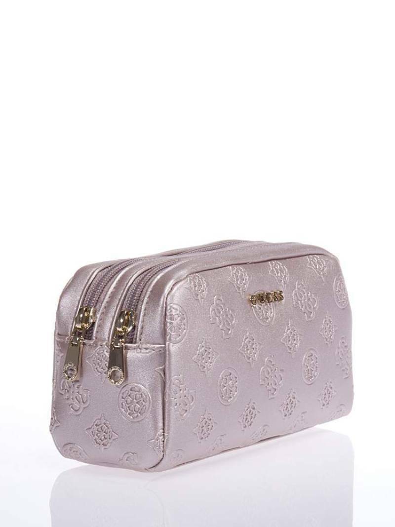 Dámská lesklá růžová kosmetická taška od Guess.