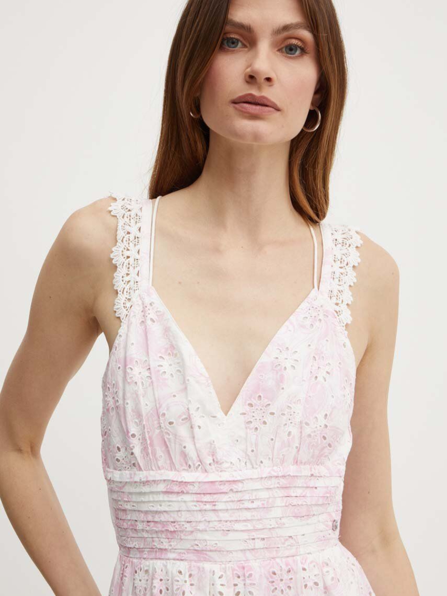 Dámské bílo růžové šaty od Guess.