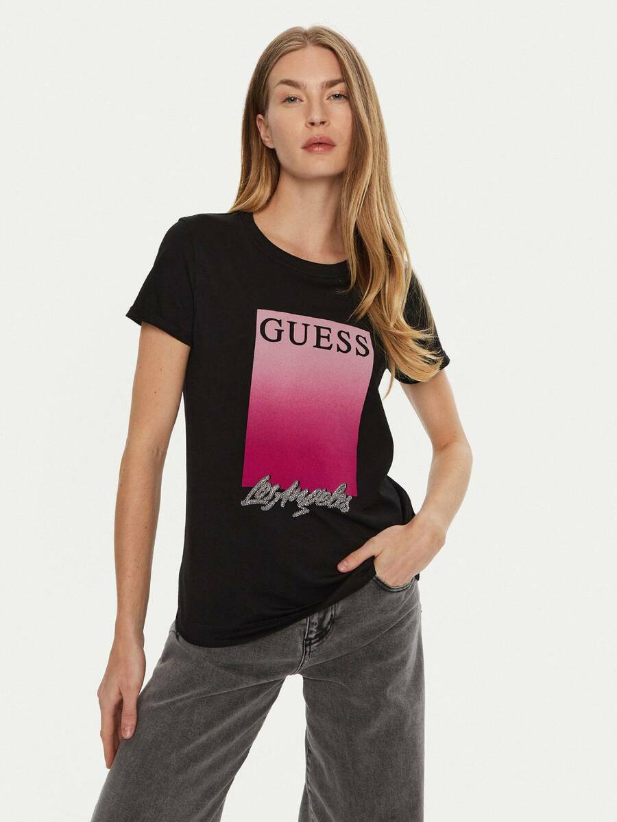 Dámské černé tričko s potiskem od Guess.