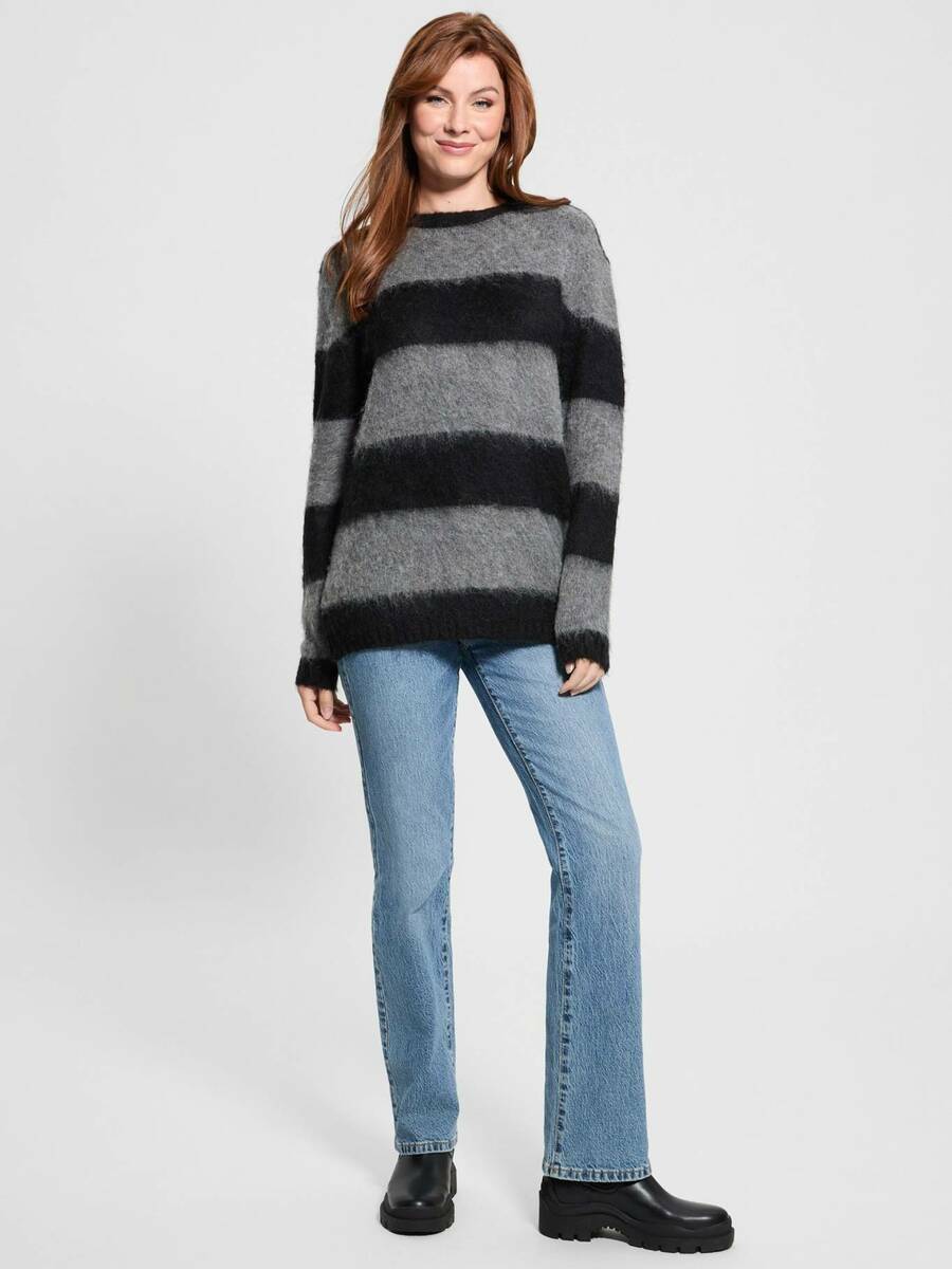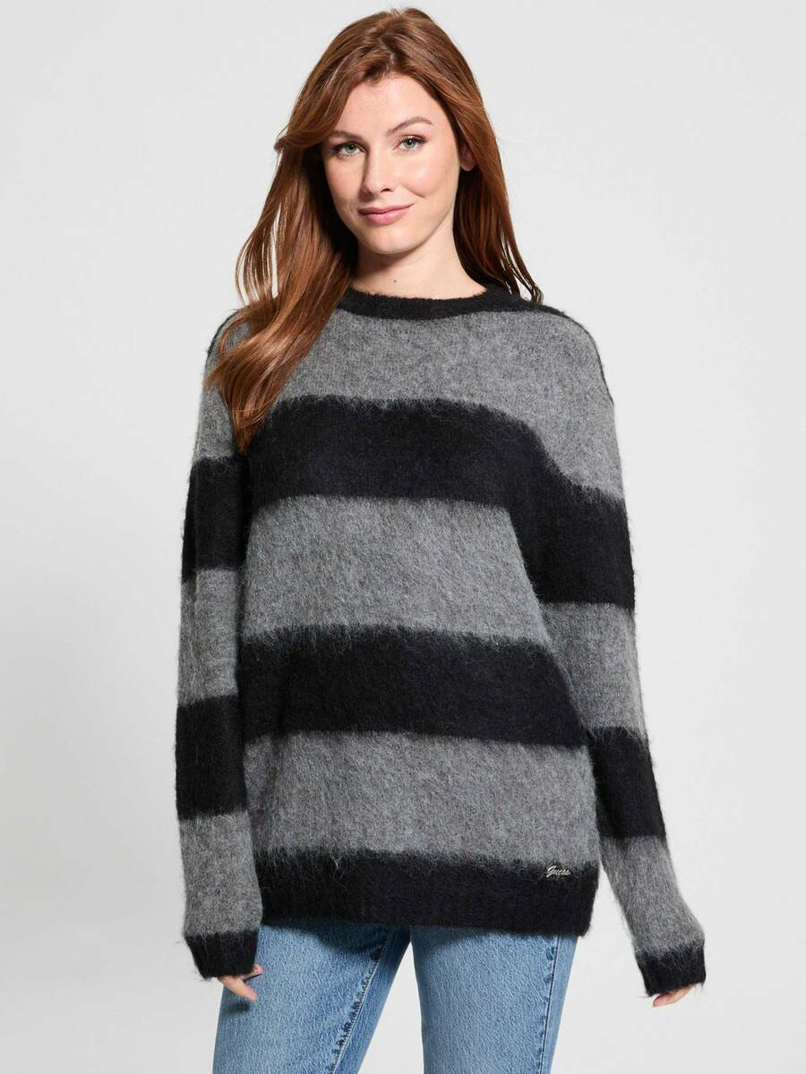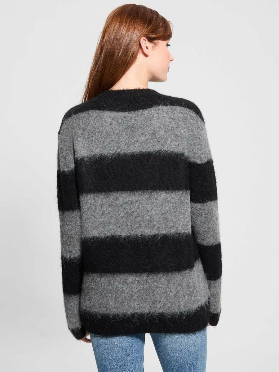 Dámský černo-šedý volný svetr od Guess.