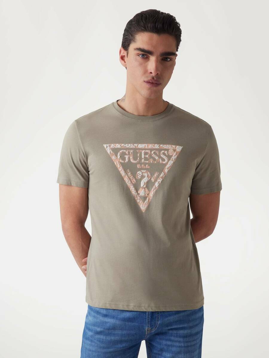 Pánské olivově zelené tričko s potiskem od Guess.