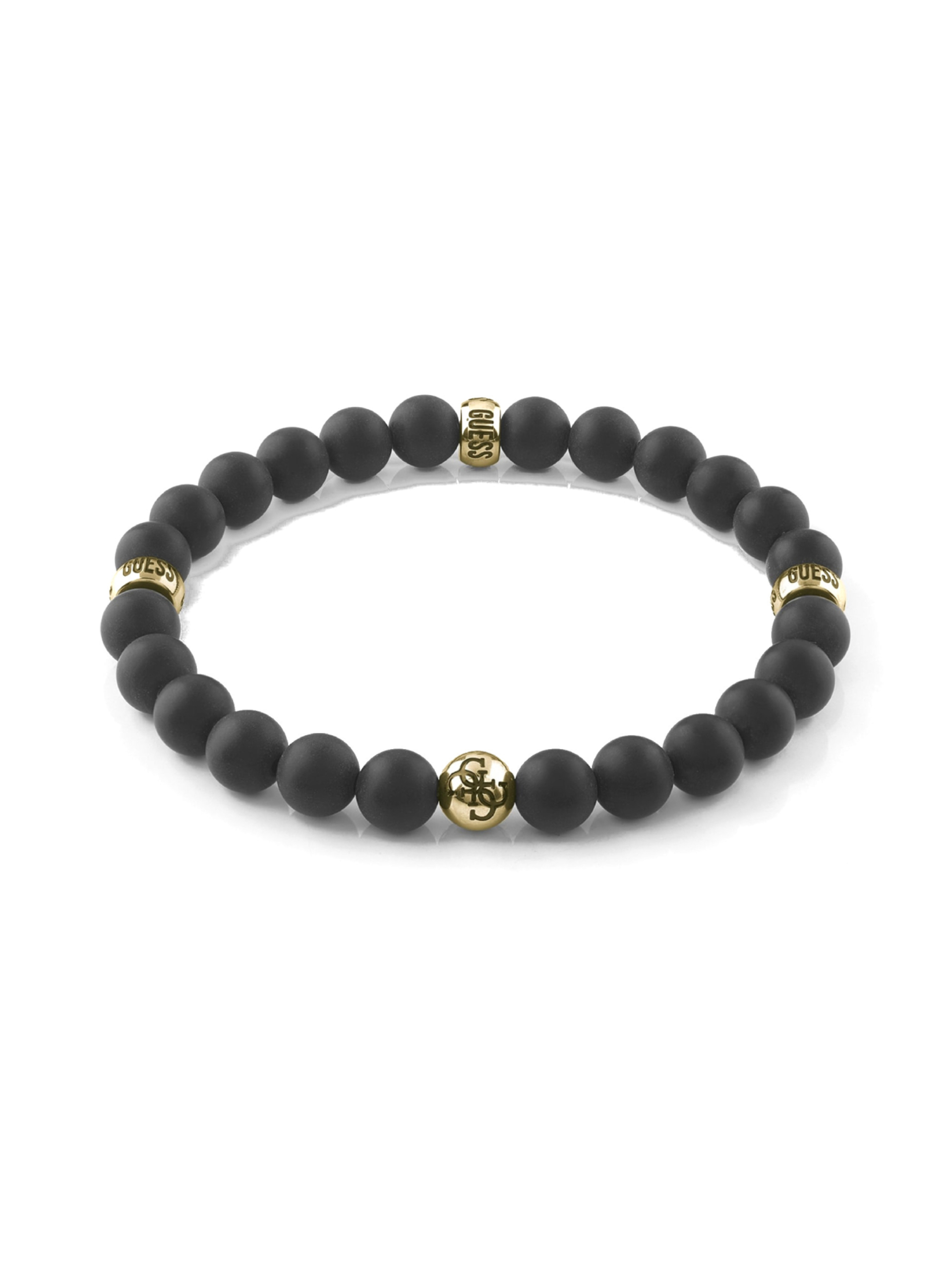 Korálkový náramek na gumičce se zlatými ozdobami.