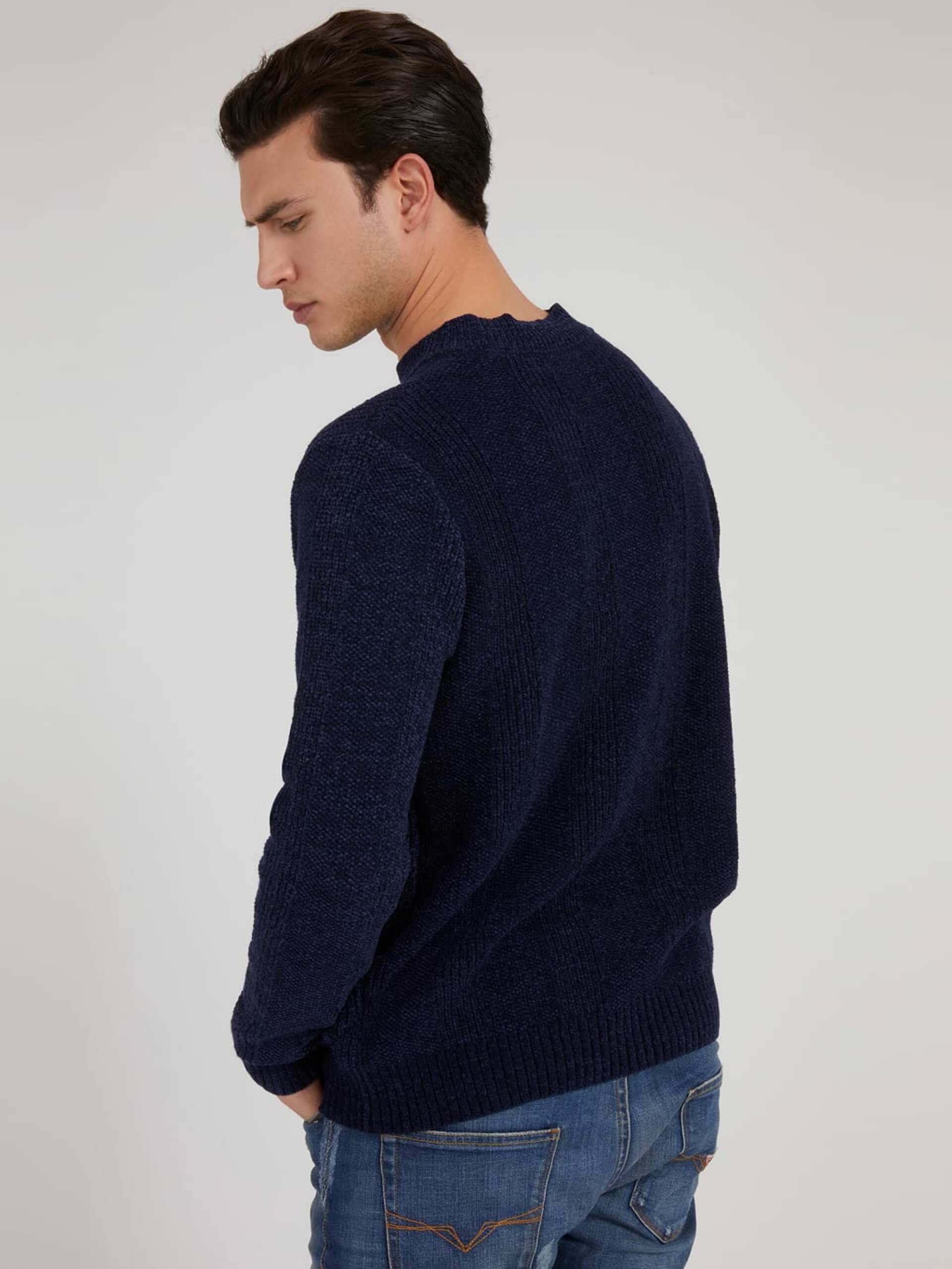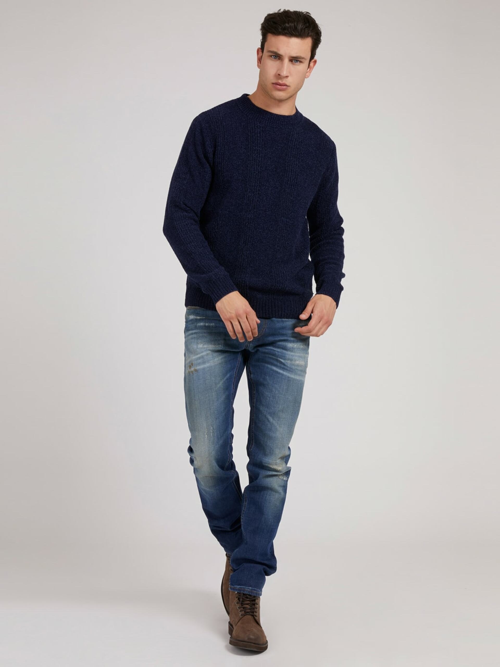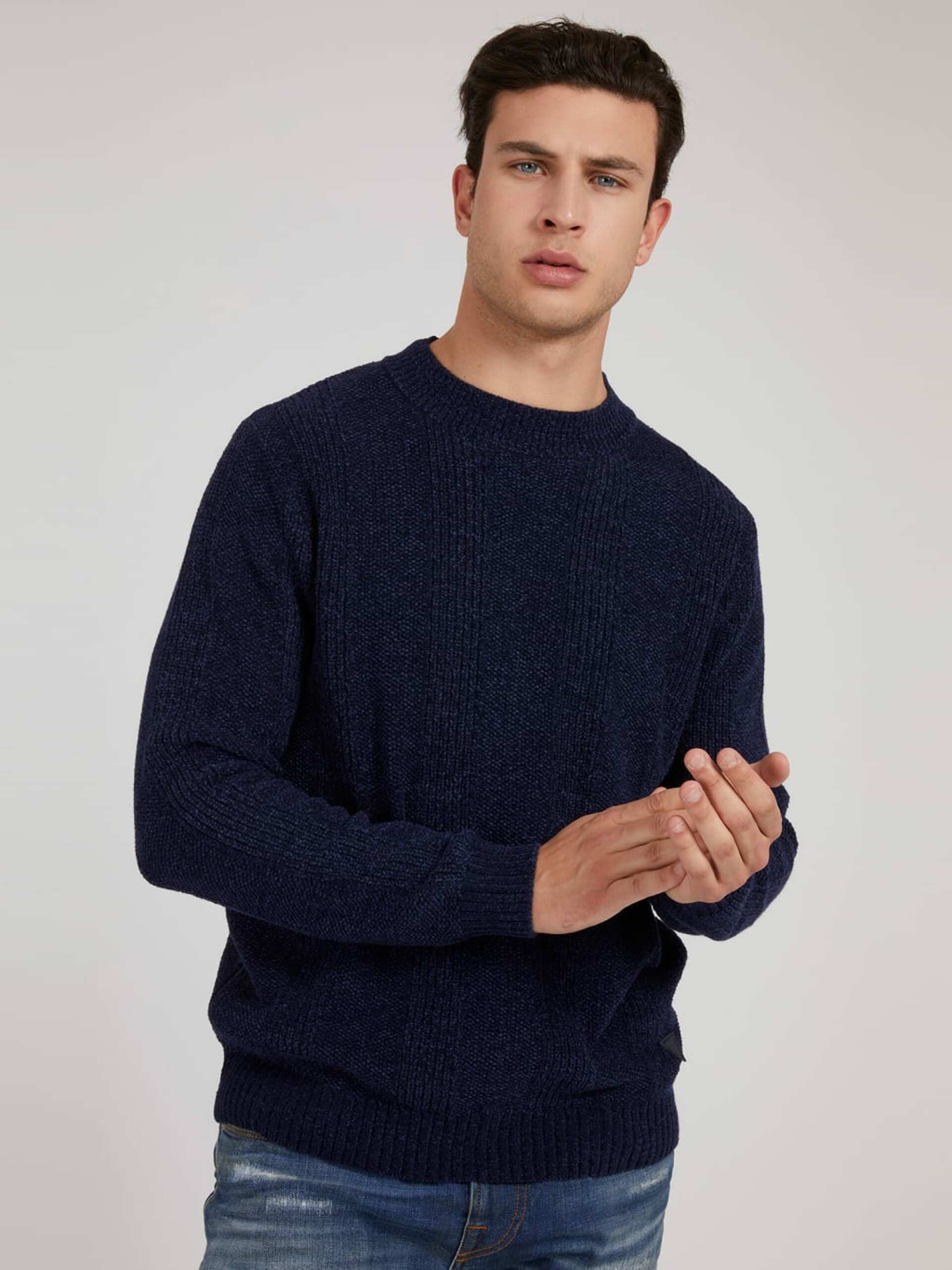 Pánský tmavě modrý svetr od Guess.