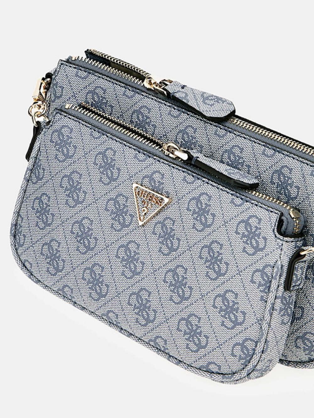 Dámská dvojitá modrá crossbody kabelka od Guess.
