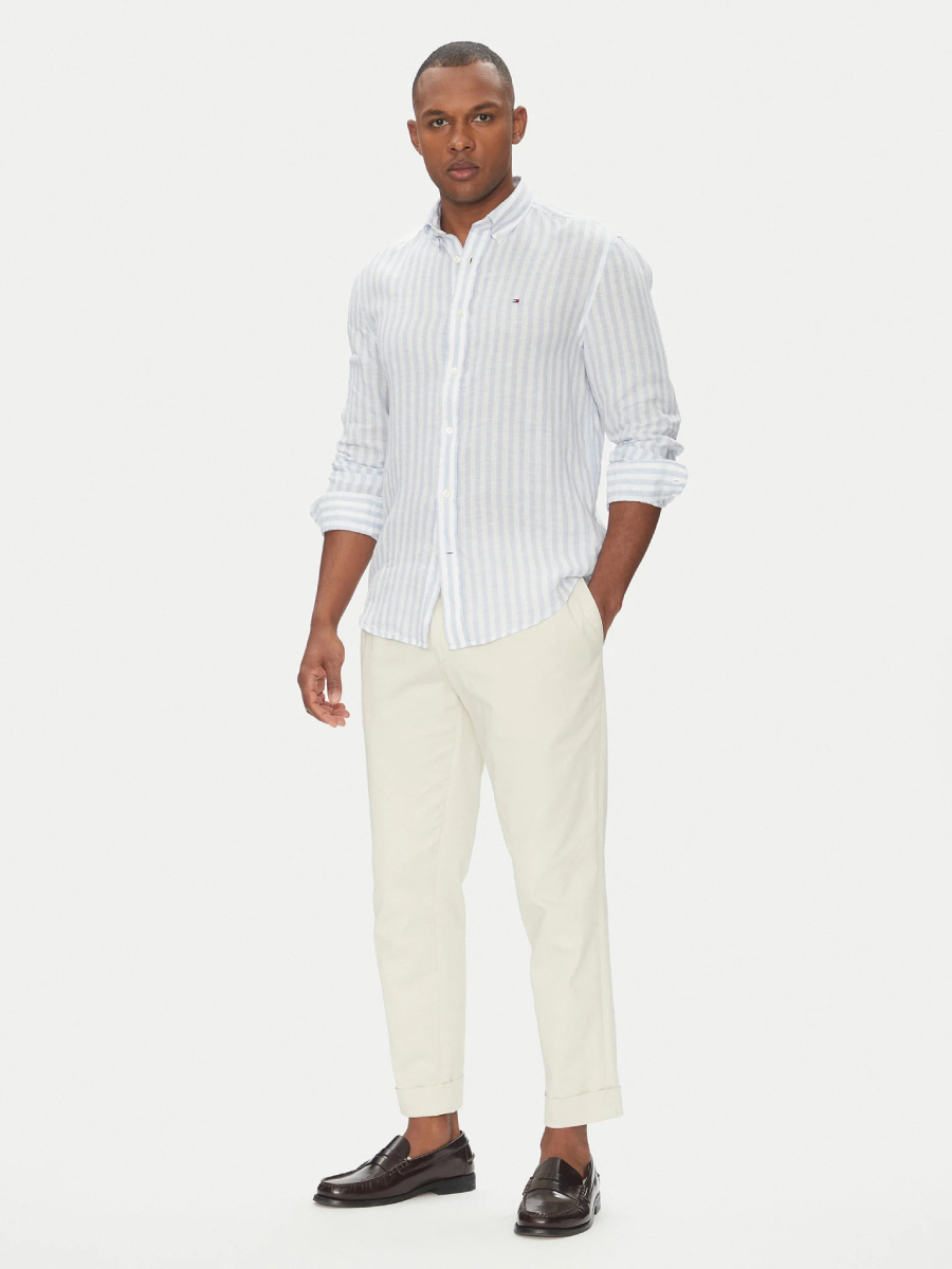 Pánská pruhovaná bílo modrá košile od Tommy Hilfiger.