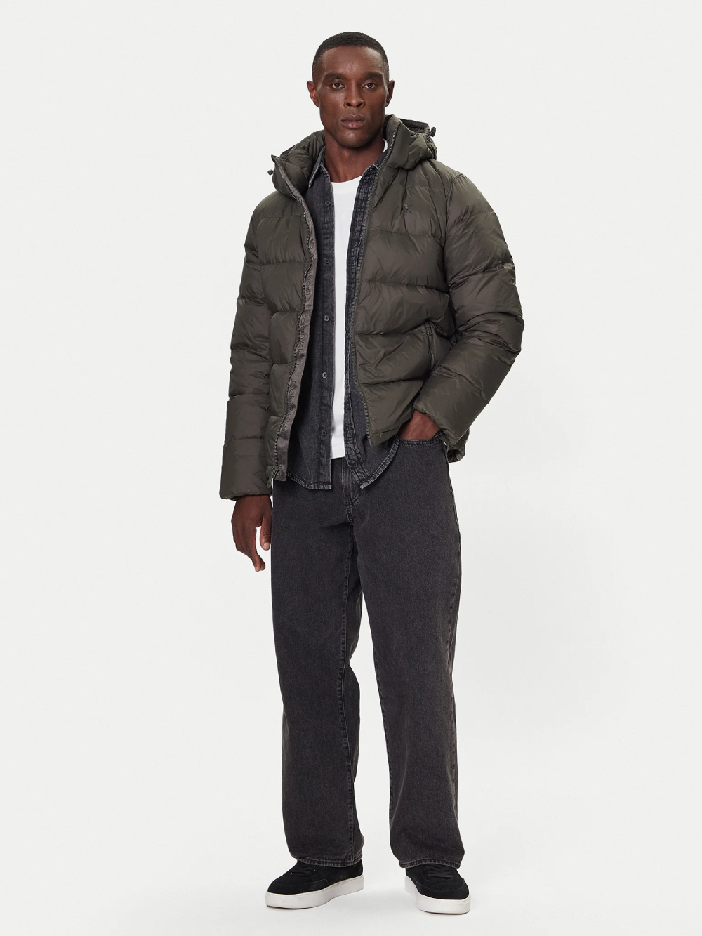 Pánská khaki zimní bunda od Calvin Klein.