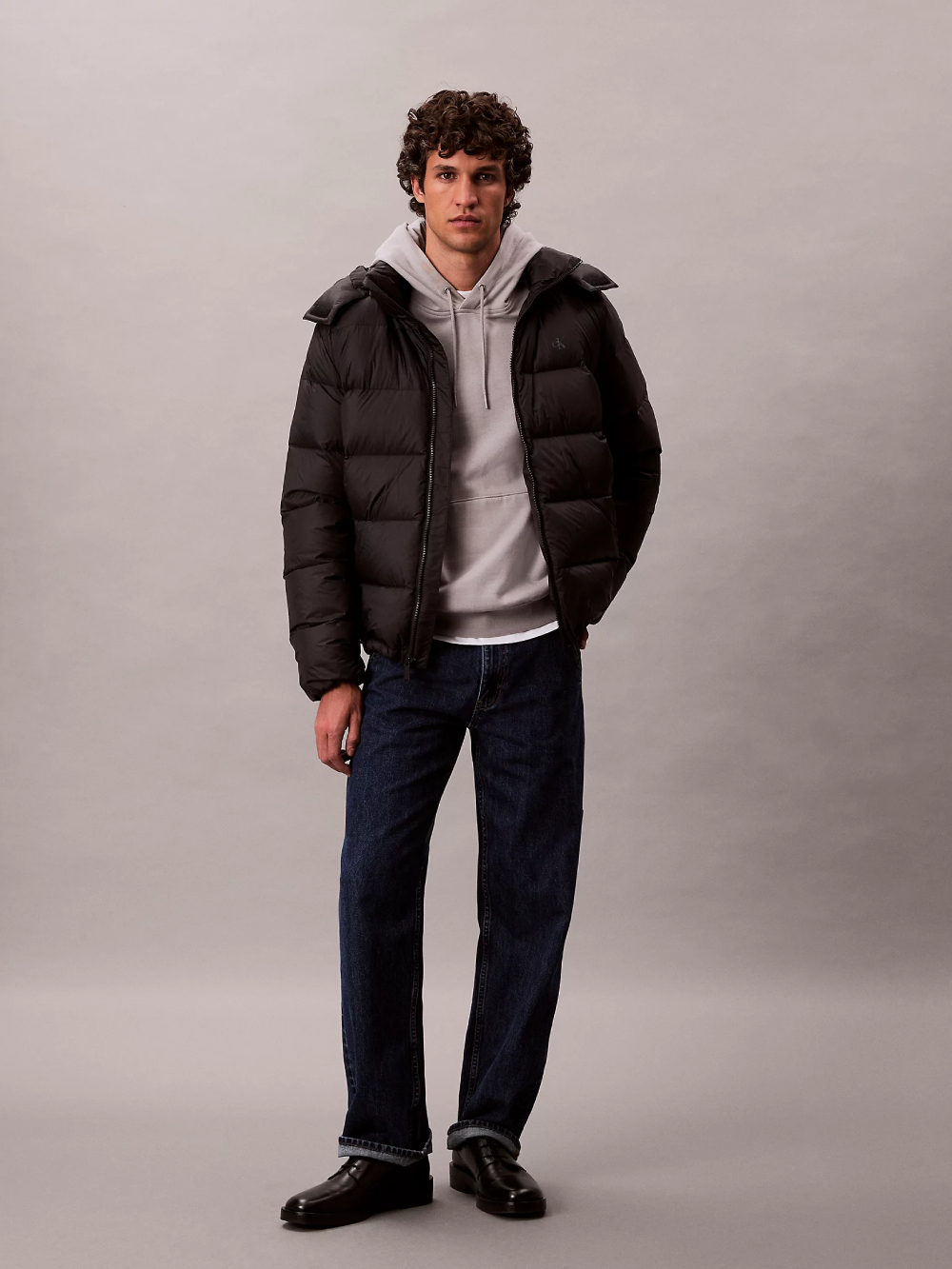 Pánská černá zimní bunda od Calvin Klein.
