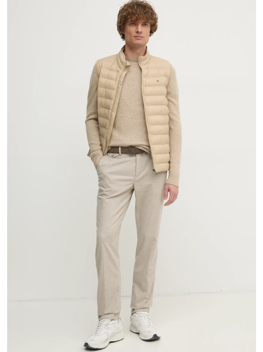 Pánská béžová podzimní vesta od Tommy Hilfiger.