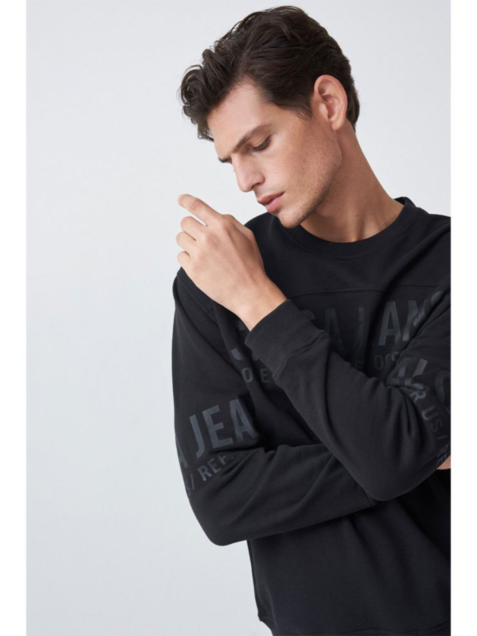 Mikina má potisk na předním díle a rukávech.