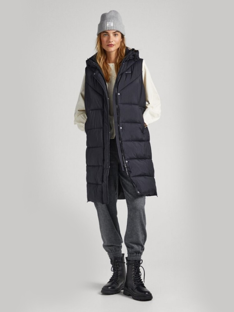 Dámská černá dlouhá vesta od Pepe Jeans.