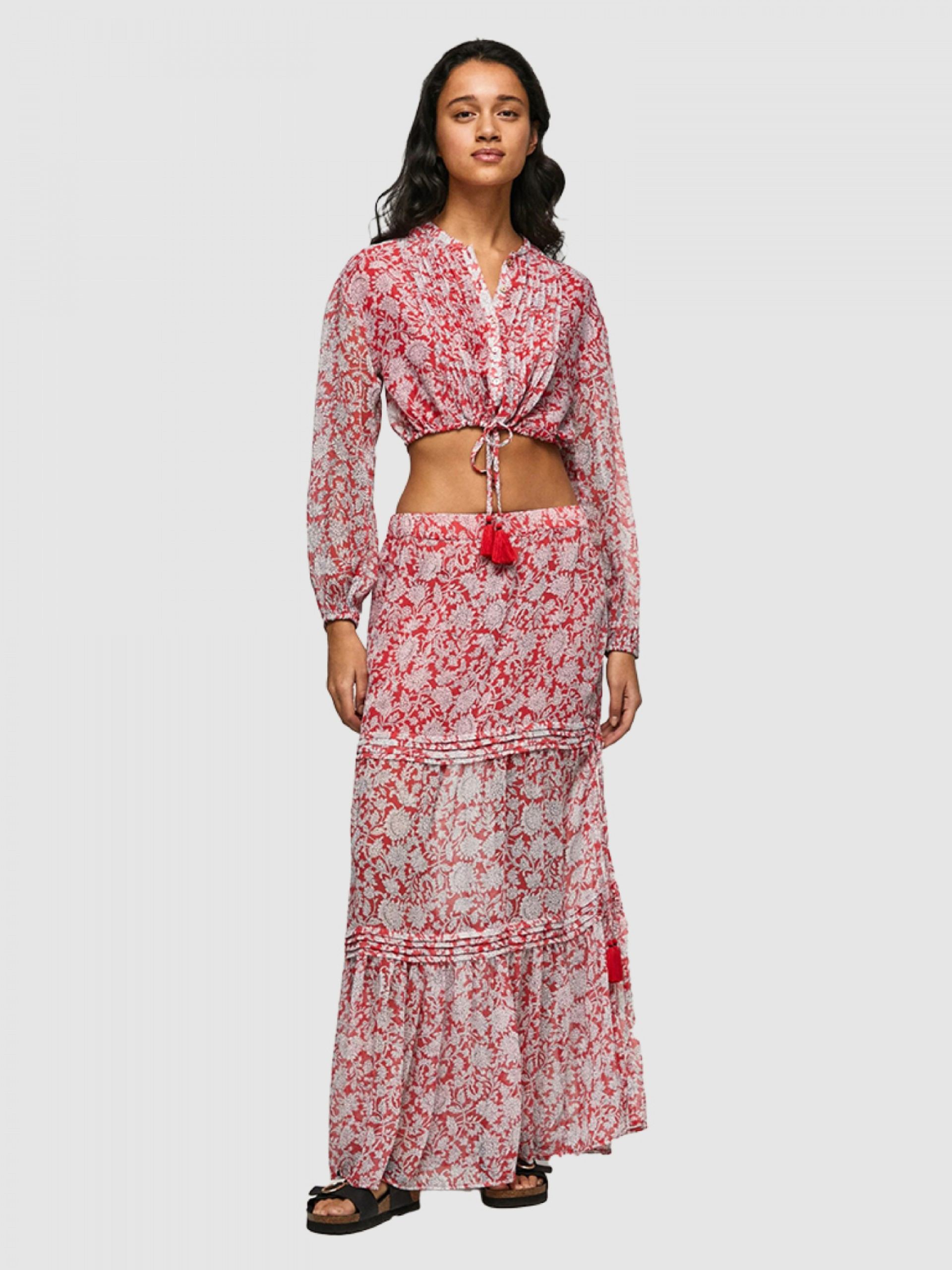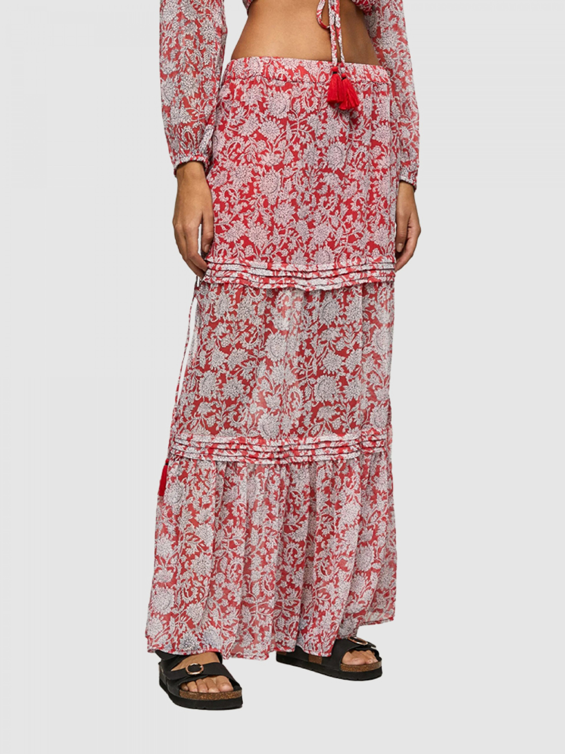 Dámská červenobílá vzorovaná dlouhá sukně od Pepe Jeans.