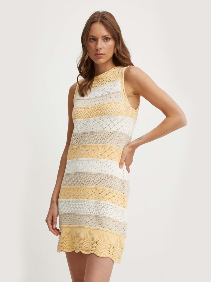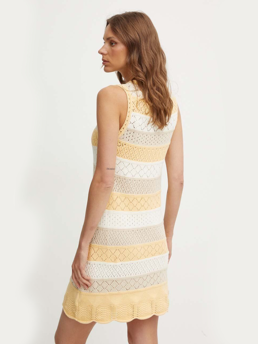 Krátké háčkované úpletové šaty.