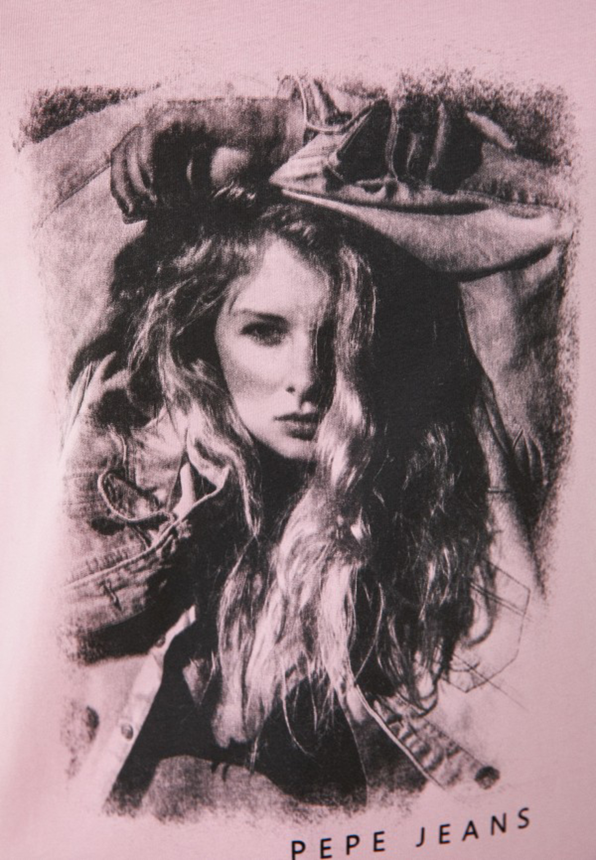 - potisk se ženou na přední části, ve spodní části potisku logo Pepe Jeans.