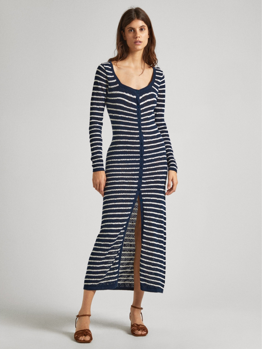 Dámské tmavě modré pruhované šaty od Pepe Jeans.