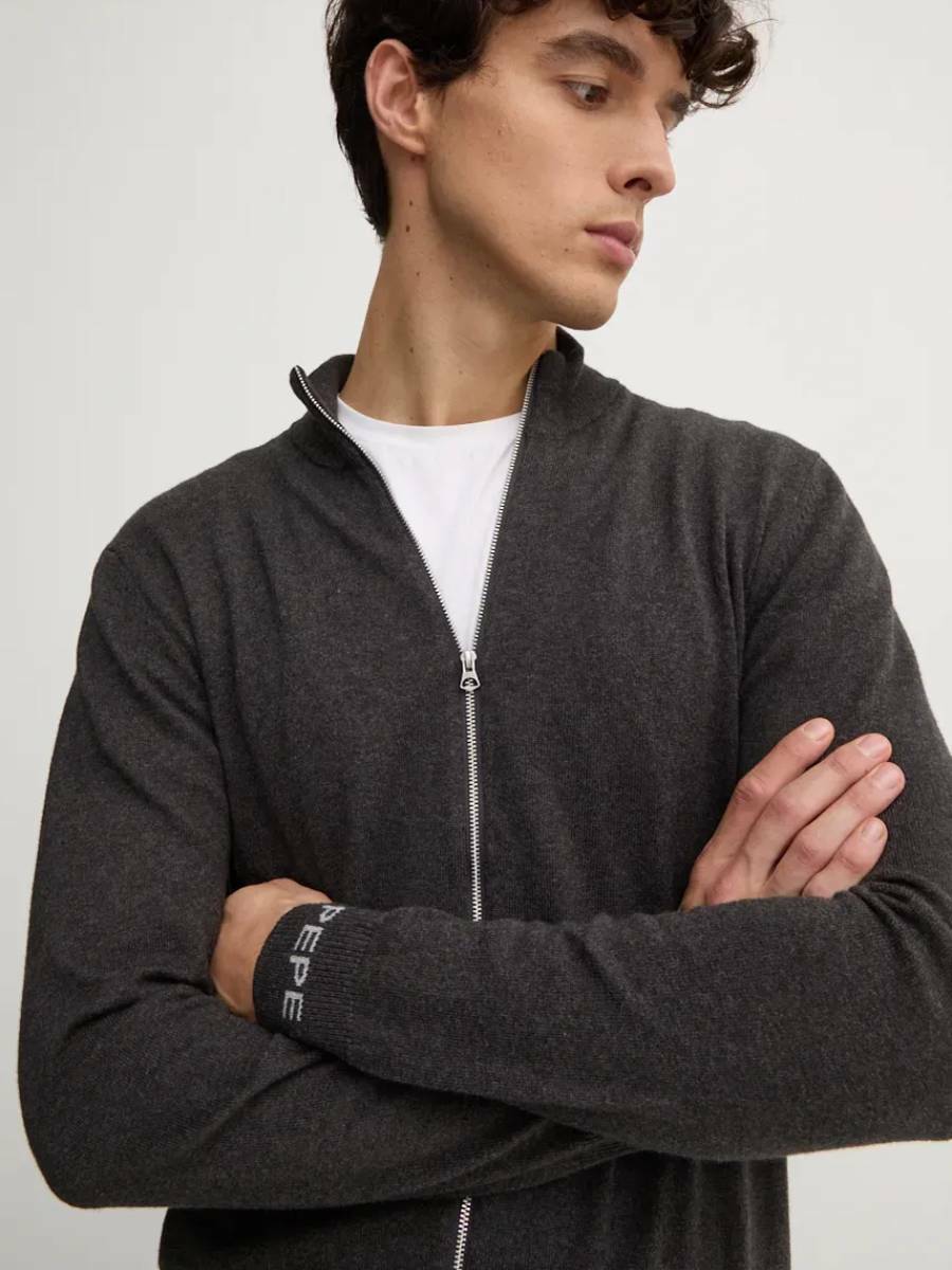 Pánský tmavě šedý svetr na propínání od Pepe Jeans.