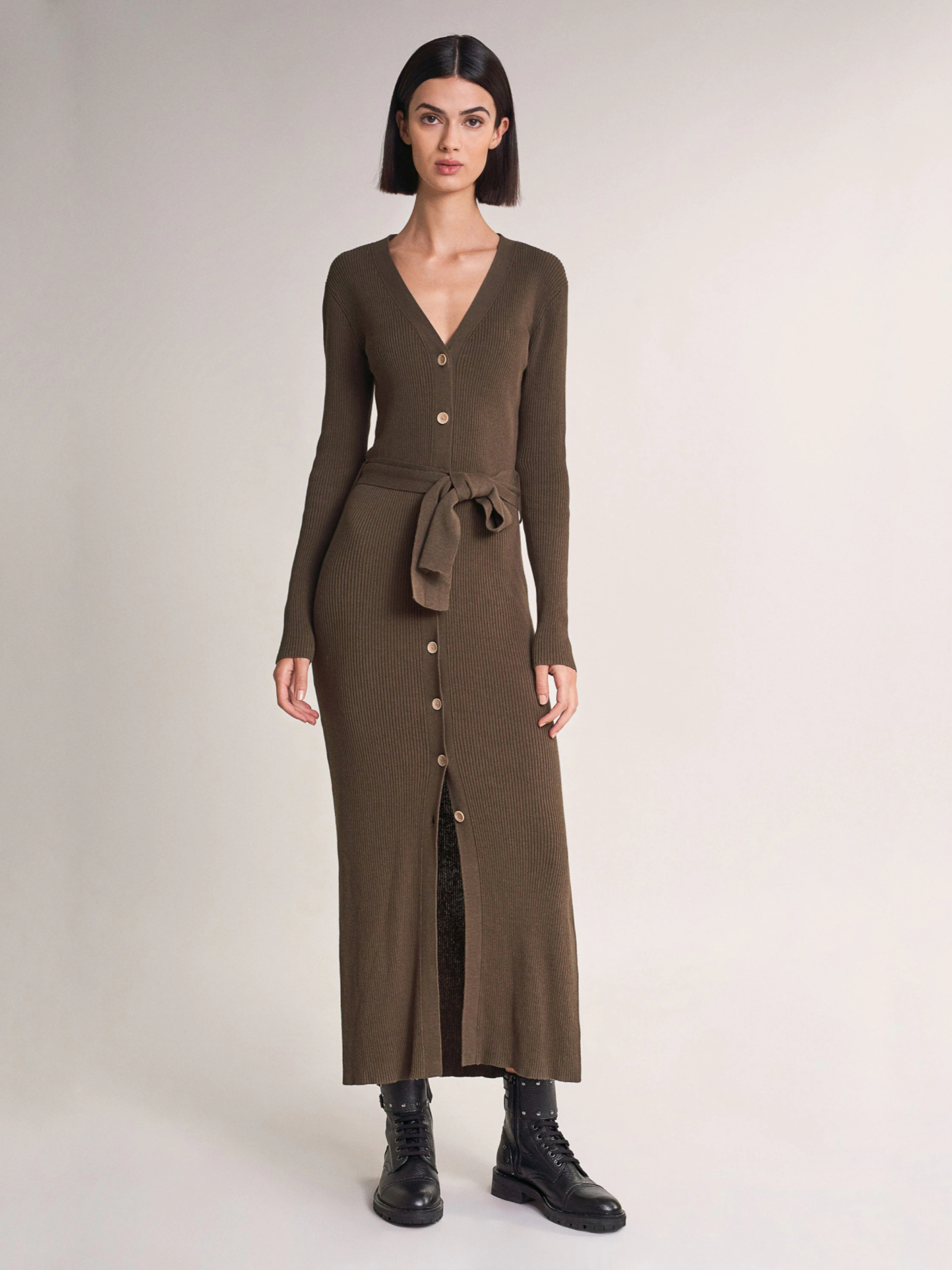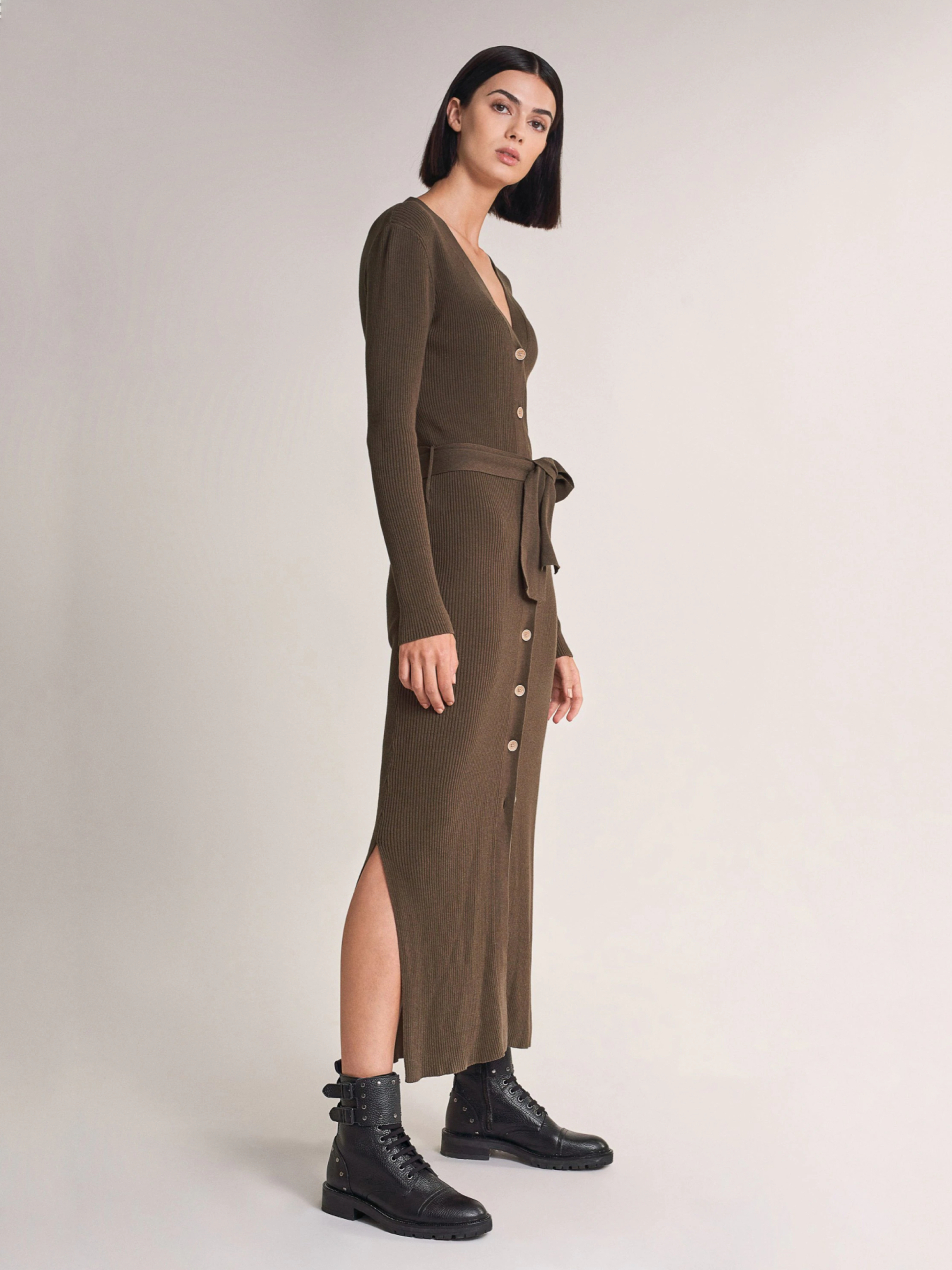 Dámské khaki zelené úpletové šaty od Salsa Jeans.