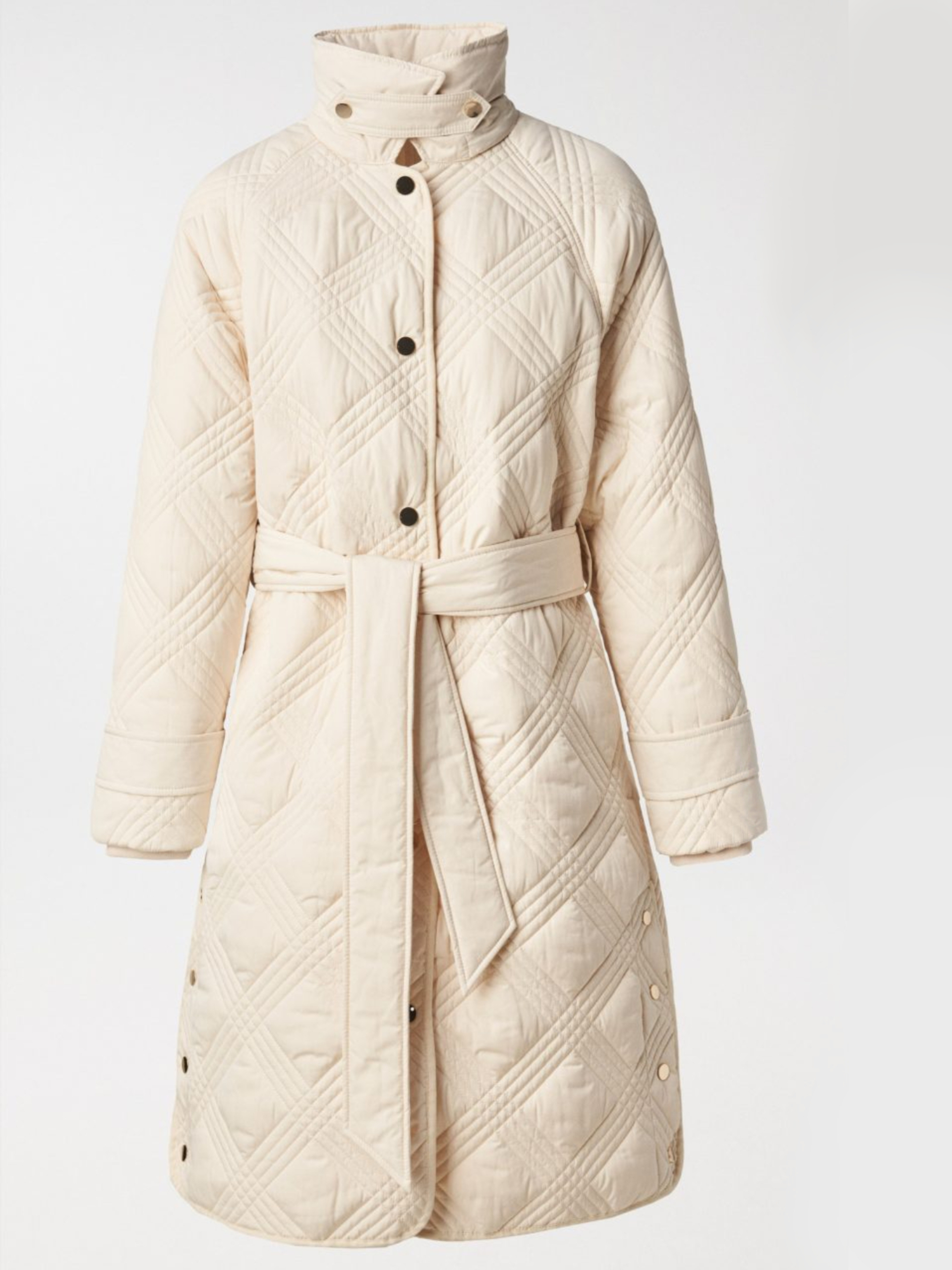 Kabátek má zavazovací pásek kolem pasu.