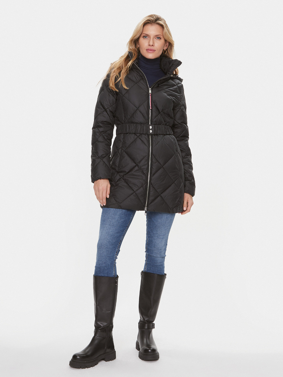 Bunda se zapína na zip, v pase má pásek a kapuce je odnímatelná.