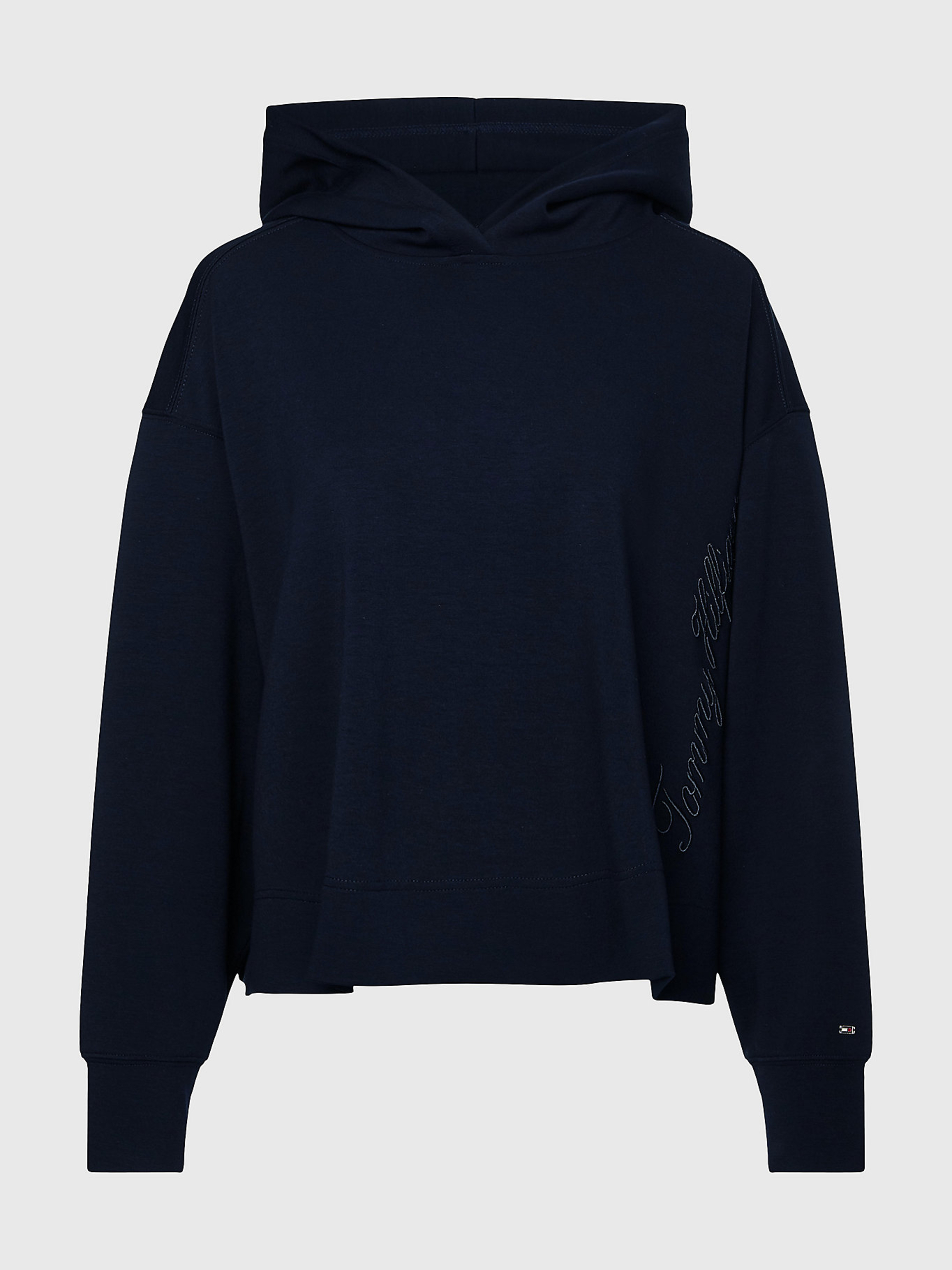 Dámská tmavě modrá mikina s kapucí od Tommy Hilfiger.