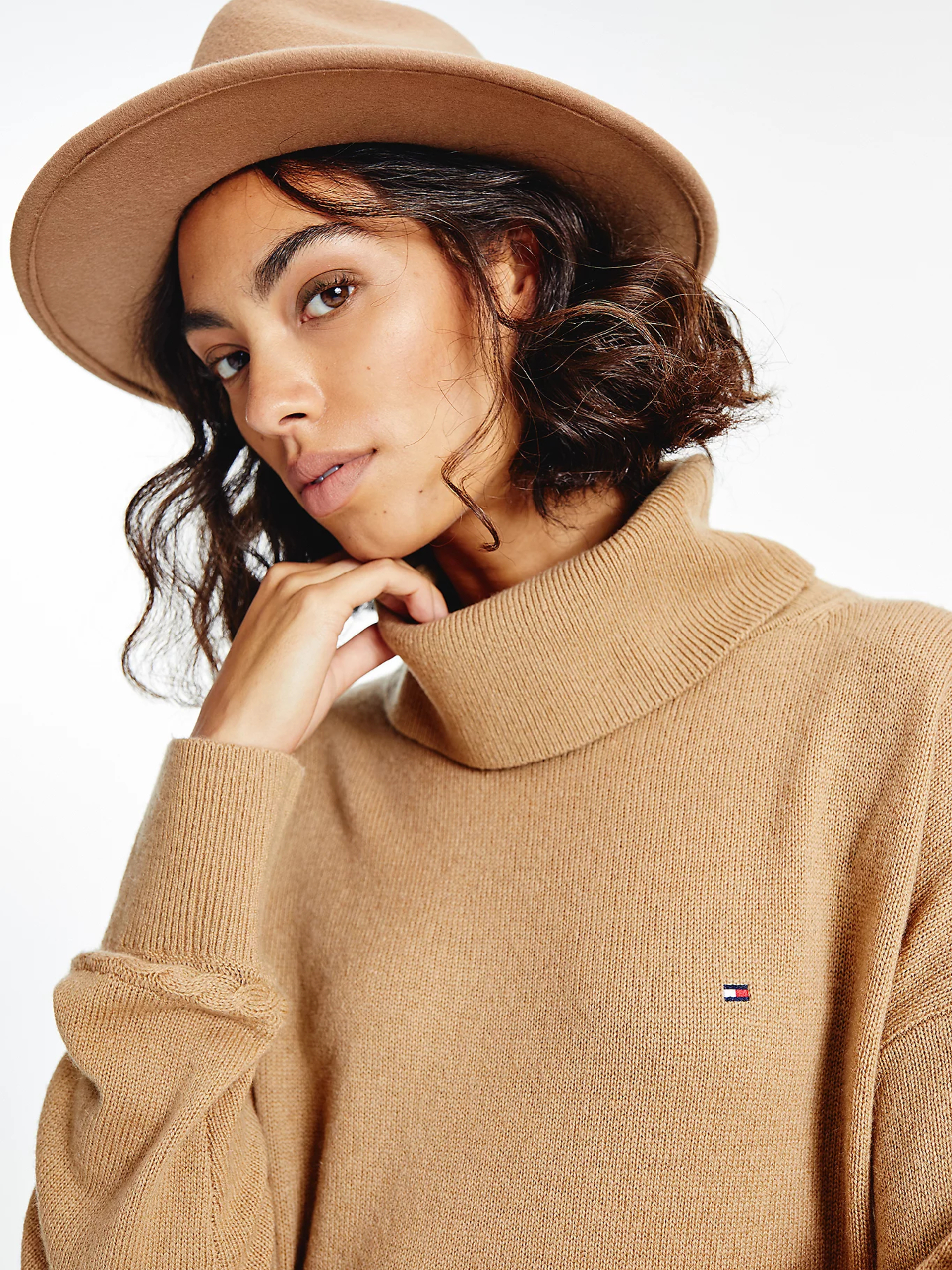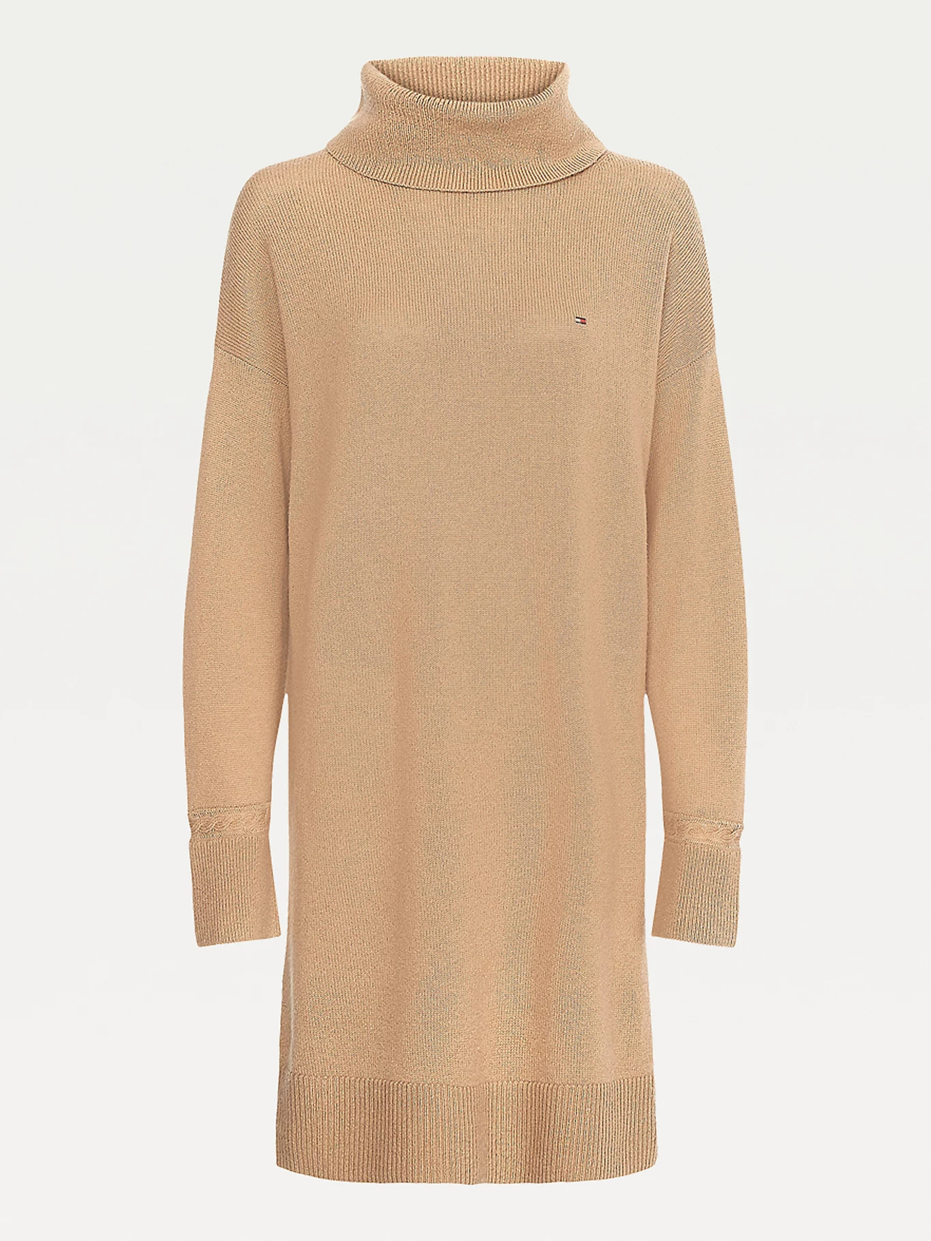 Dámské tmavě modré pletené šaty s rolákem od Tommy Hilfiger.